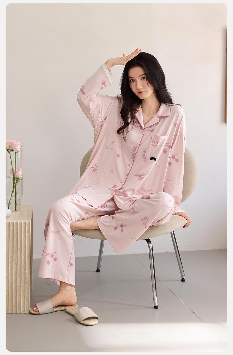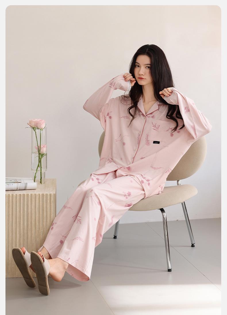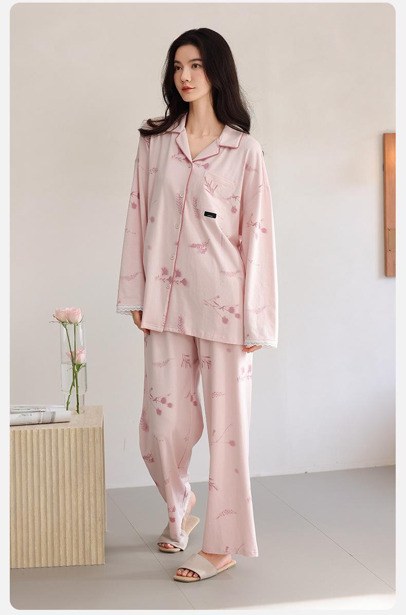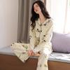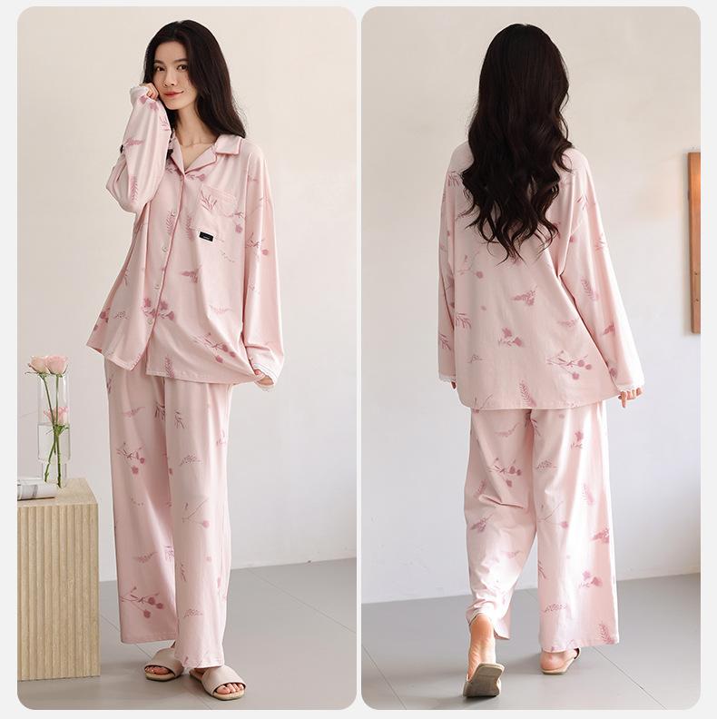 Pijama para Mujer Primavera y Otoño Algodón Puro Manga Larga Dulce Conjunto Cárdigan Otoño Se Puede Usar Afuera Algodón Transpirable Casual Ropa de Casa
