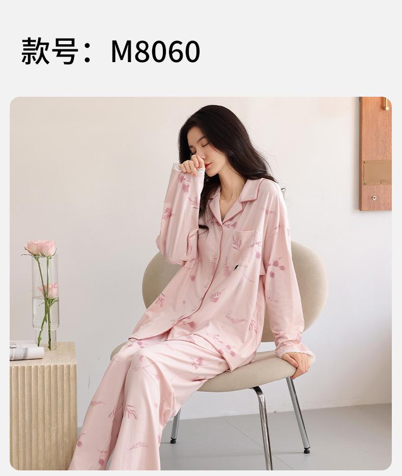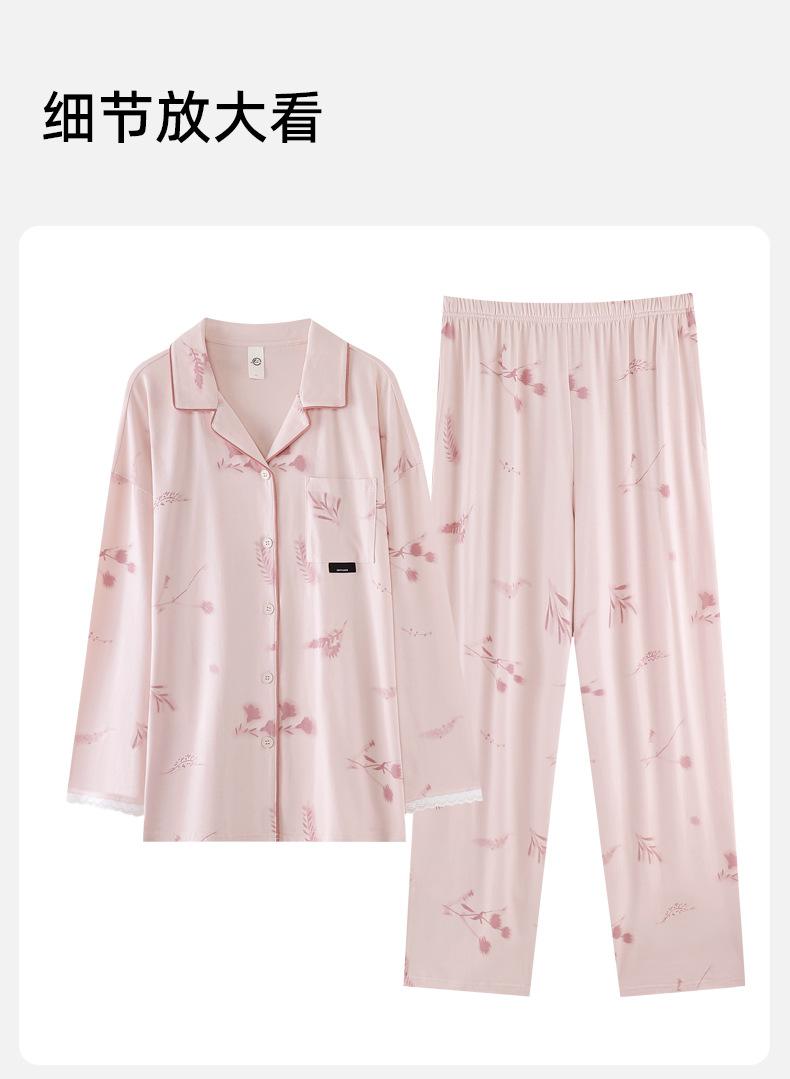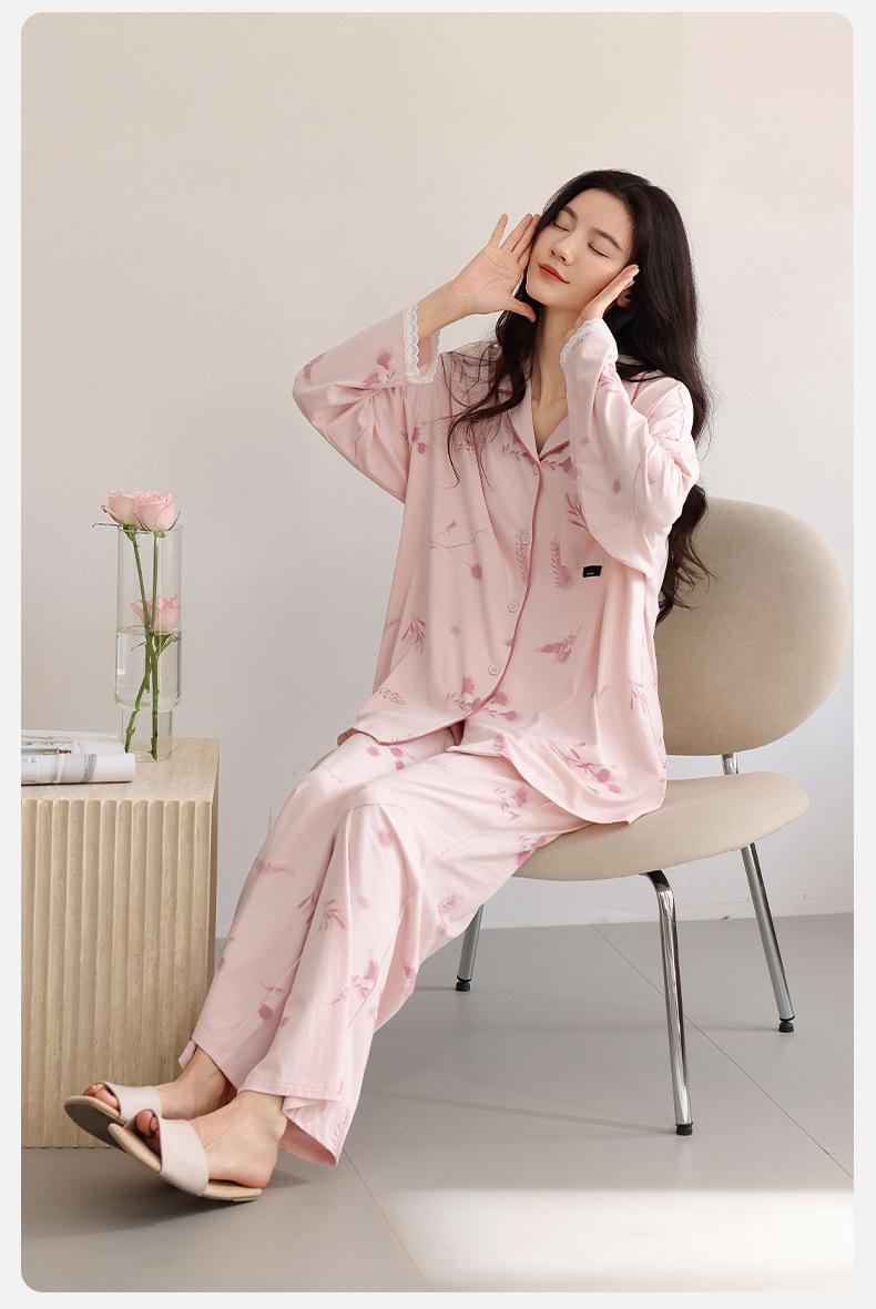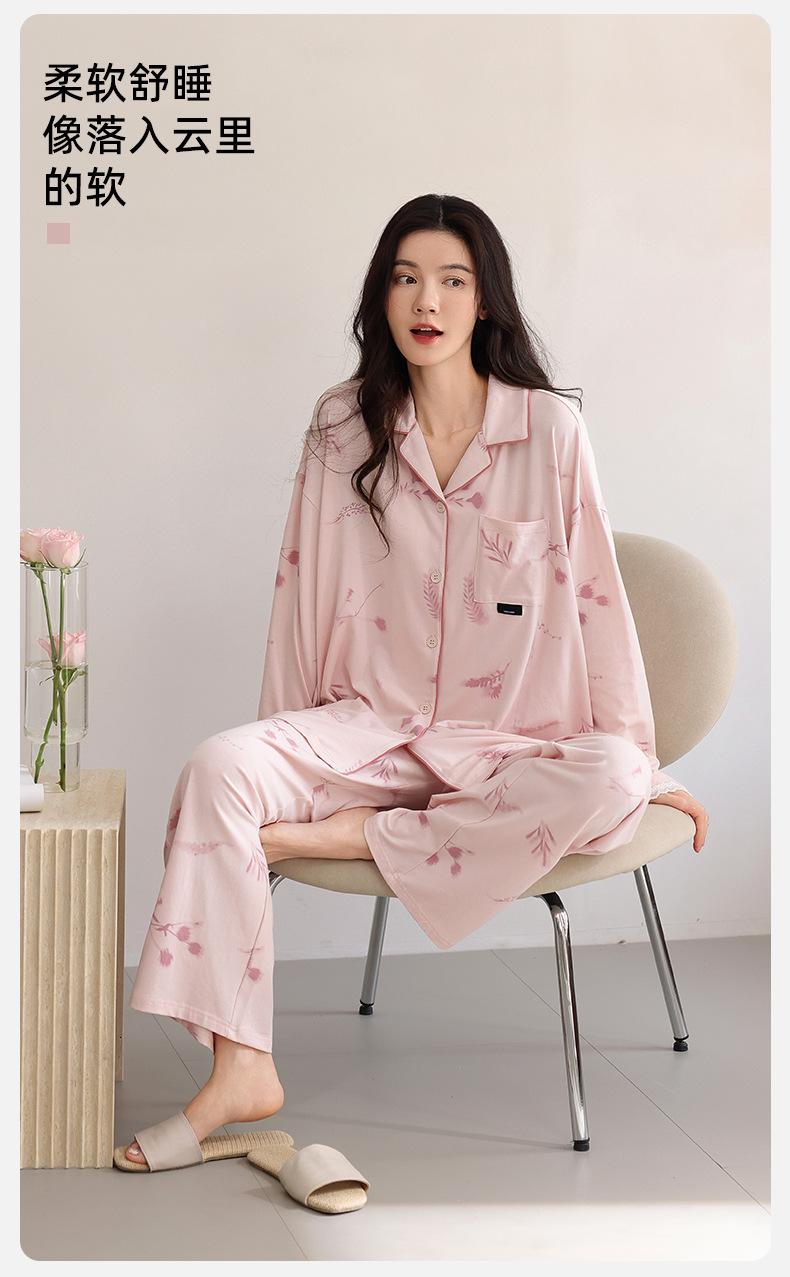 Pijama para Mujer Primavera y Otoño Algodón Puro Manga Larga Dulce Conjunto Cárdigan Otoño Se Puede Usar Afuera Algodón Transpirable Casual Ropa de Casa