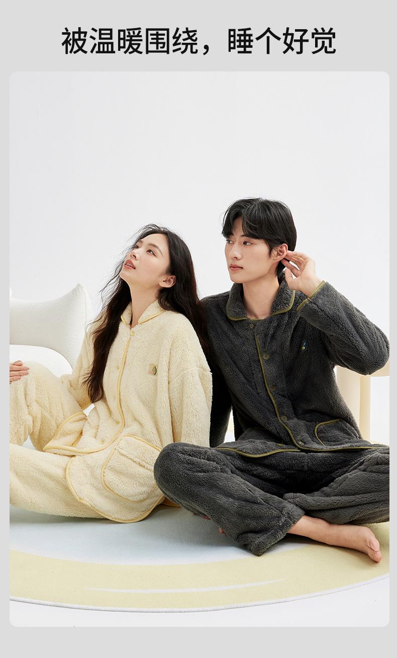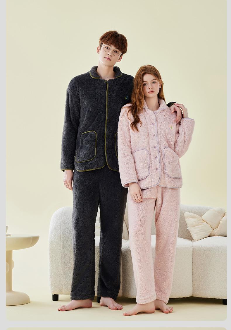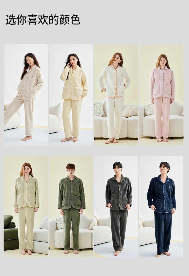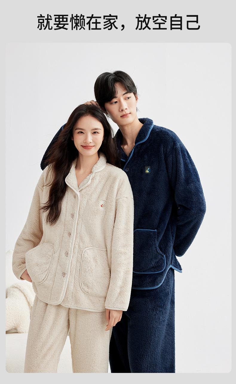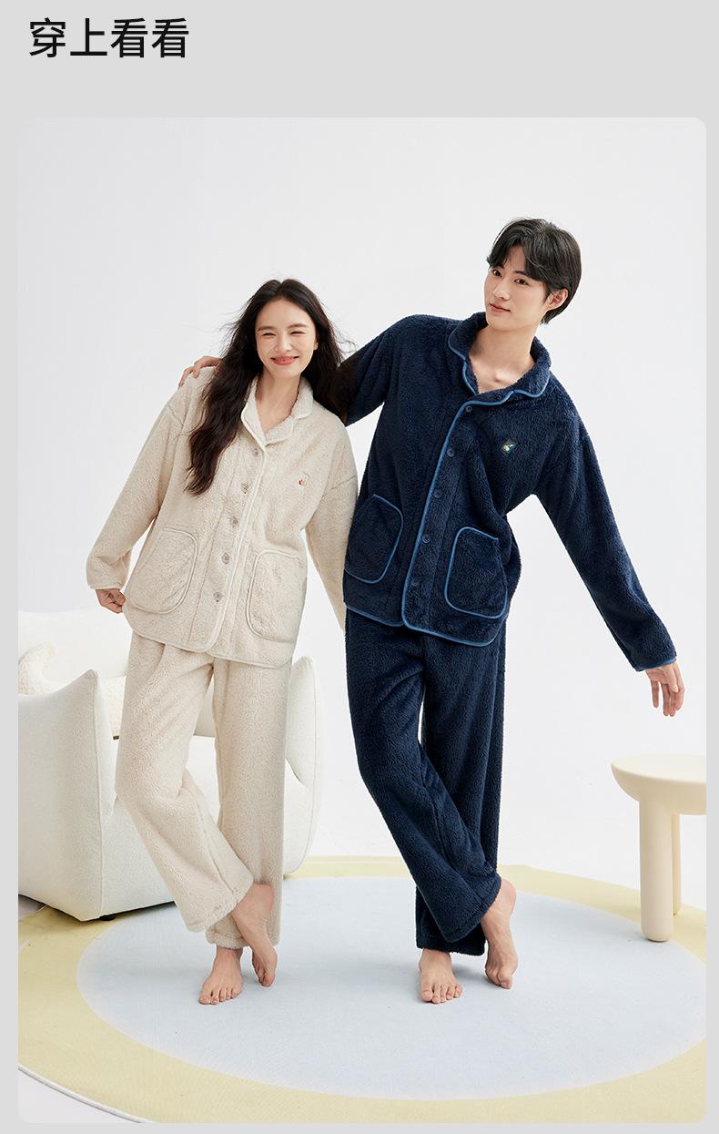 Pijama de forro polar coral para mujer otoño e invierno engrosado nuevo solapa cálido pareja puede usar exterior invierno hogar ropa para el hogar