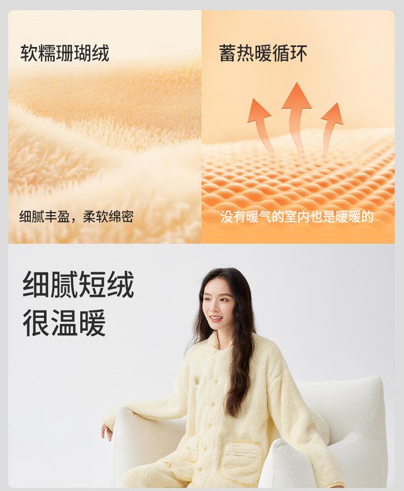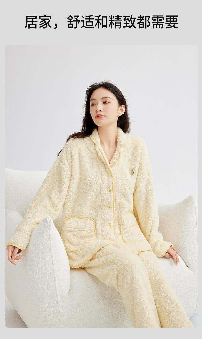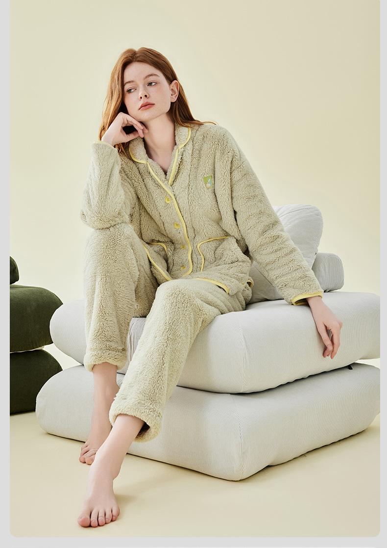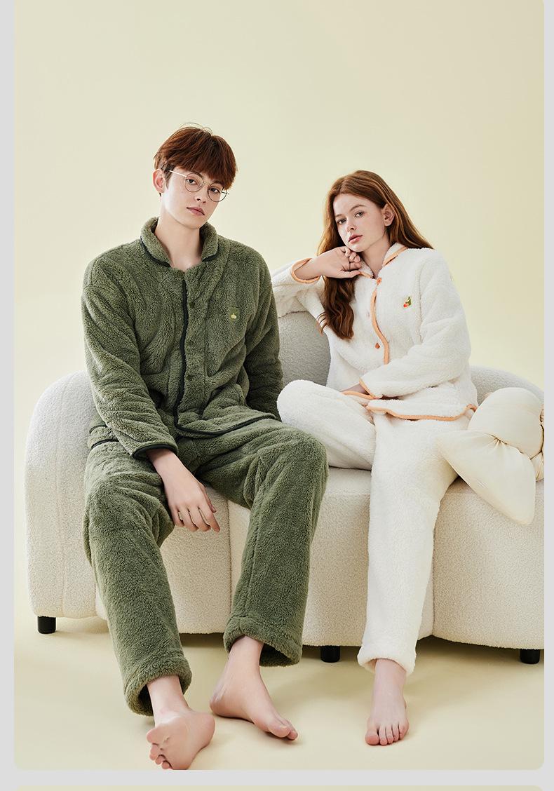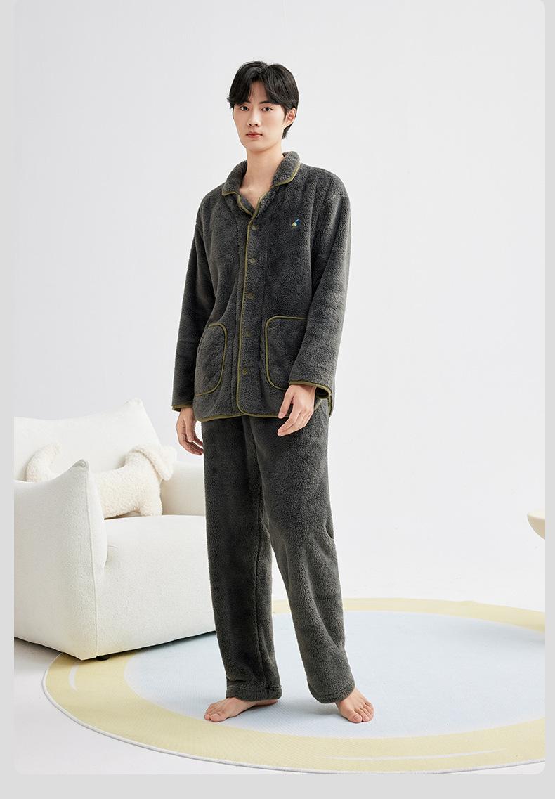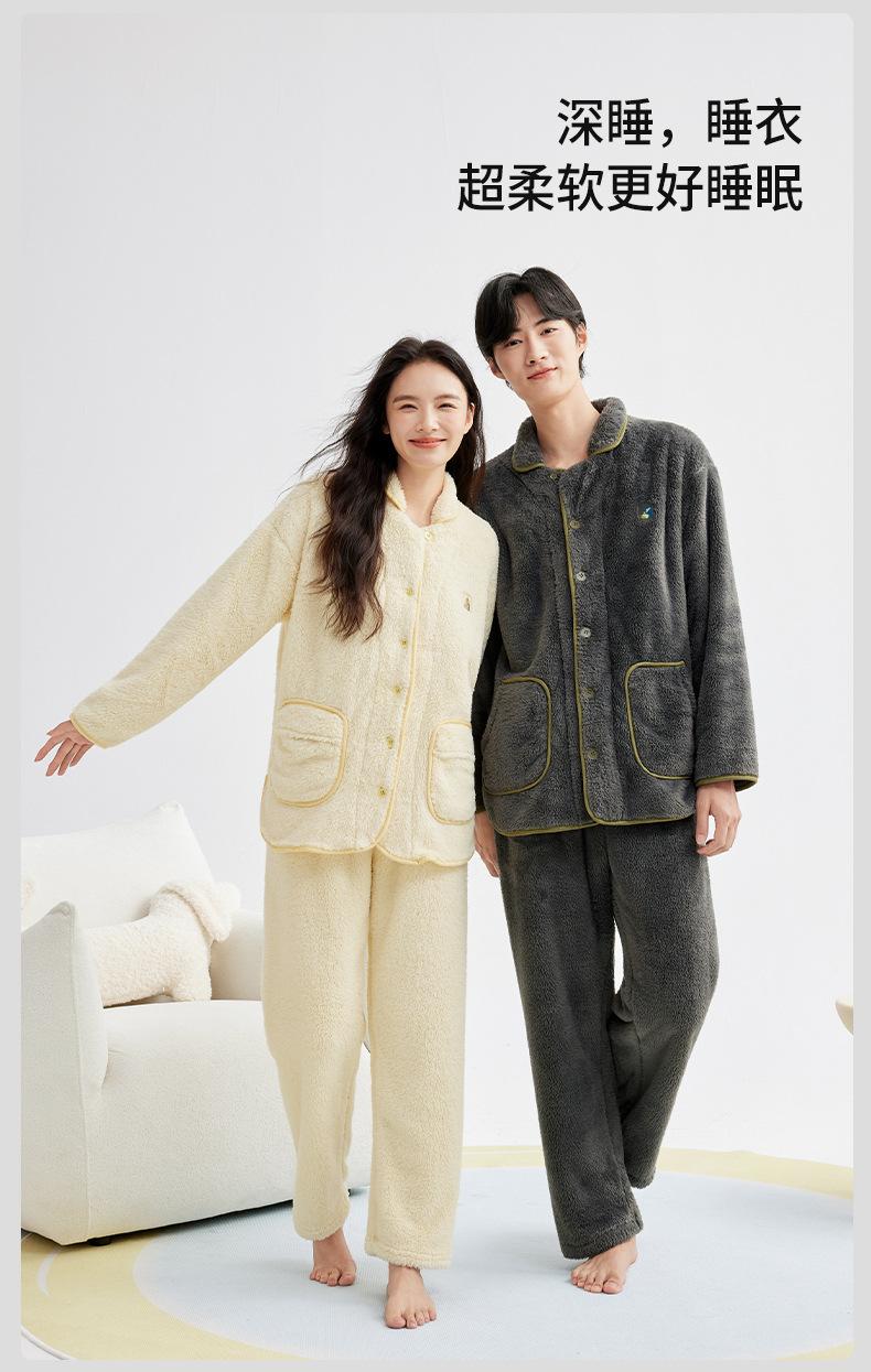 Pijama de forro polar coral para mujer otoño e invierno engrosado nuevo solapa cálido pareja puede usar exterior invierno hogar ropa para el hogar