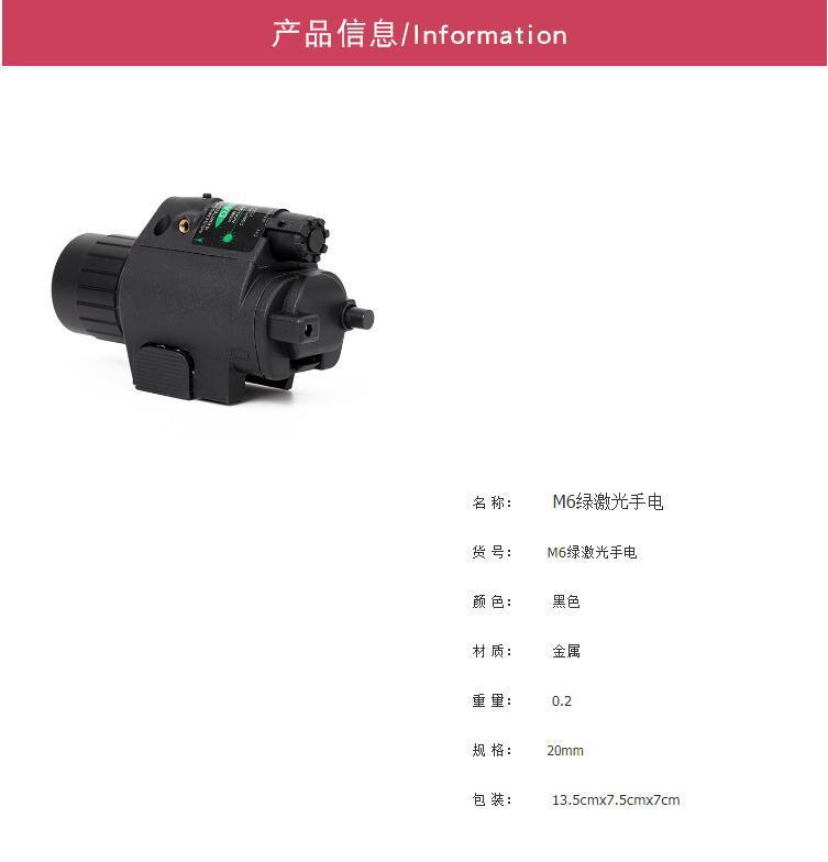 Black M6 green laser flashlight (plastic body)