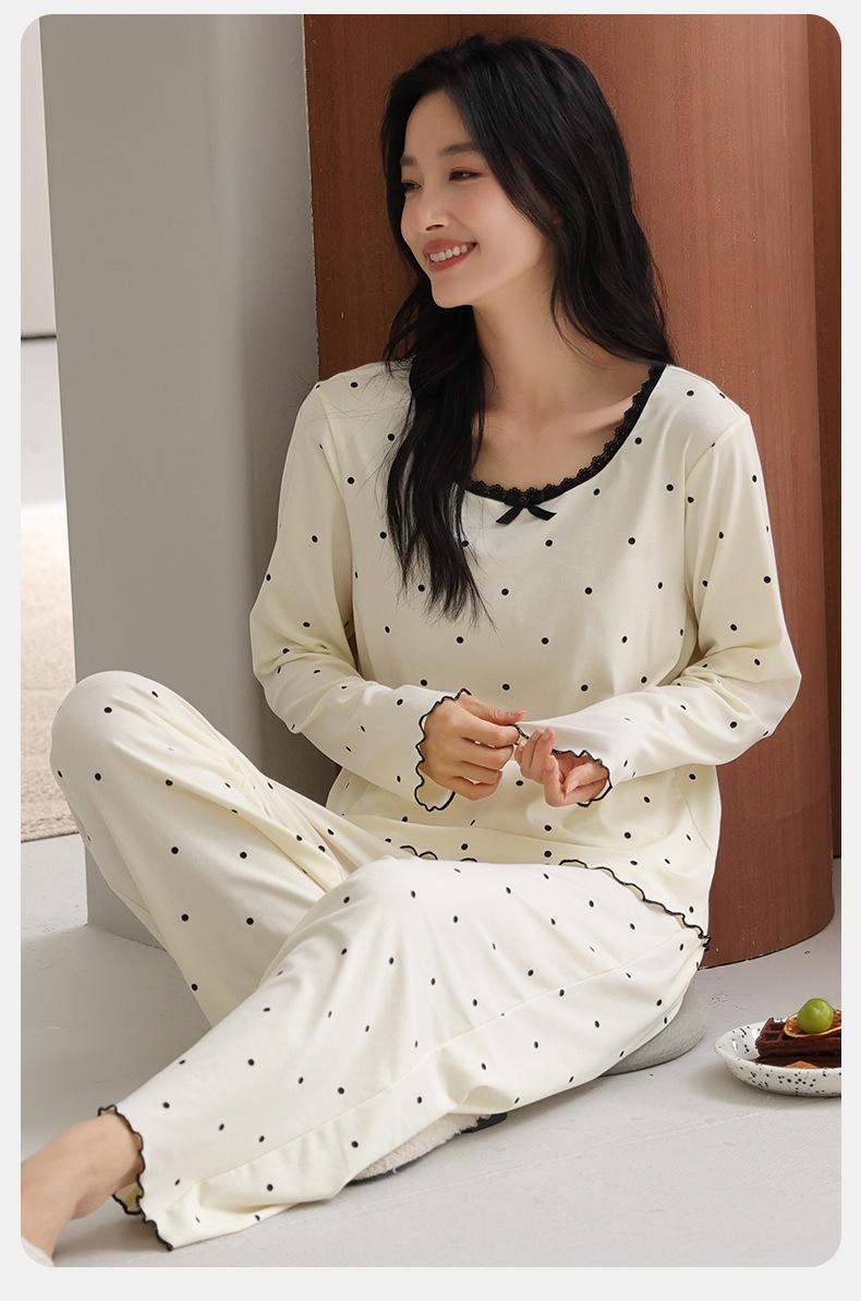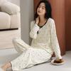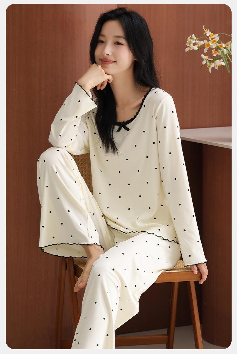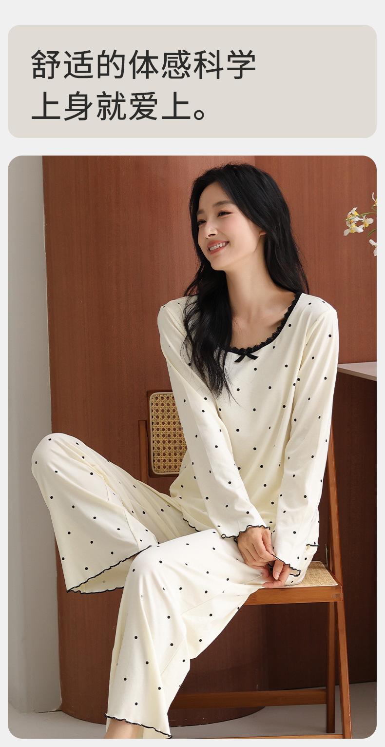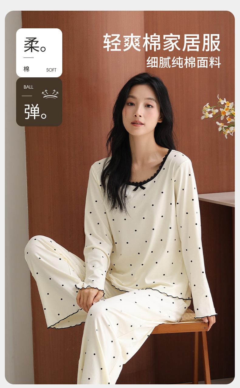 Pijamas nuevos de primavera y otoño para mujer Súper suaves, agradables para la piel, conjunto de algodón puro, cómodos, con lazo, cuello redondo, ropa para el hogar, se pueden usar al aire libre