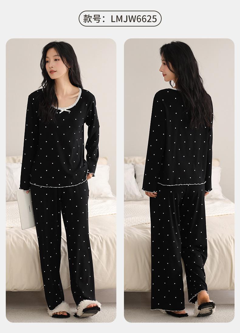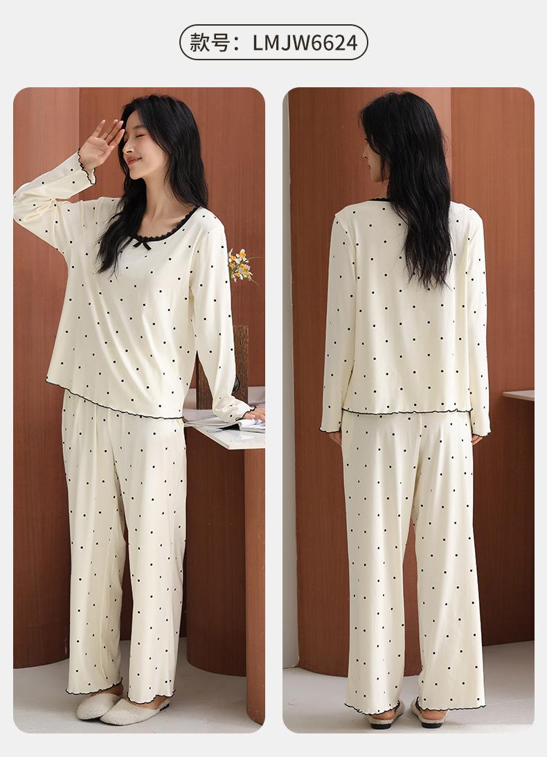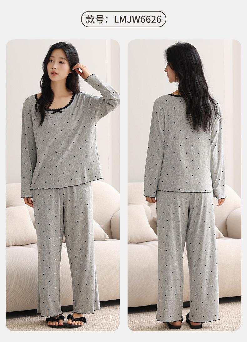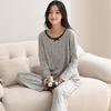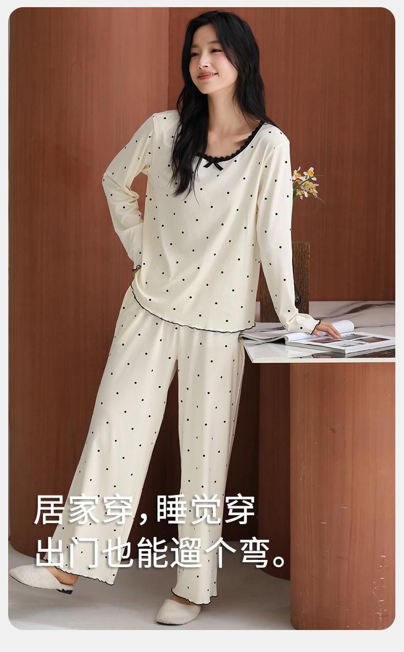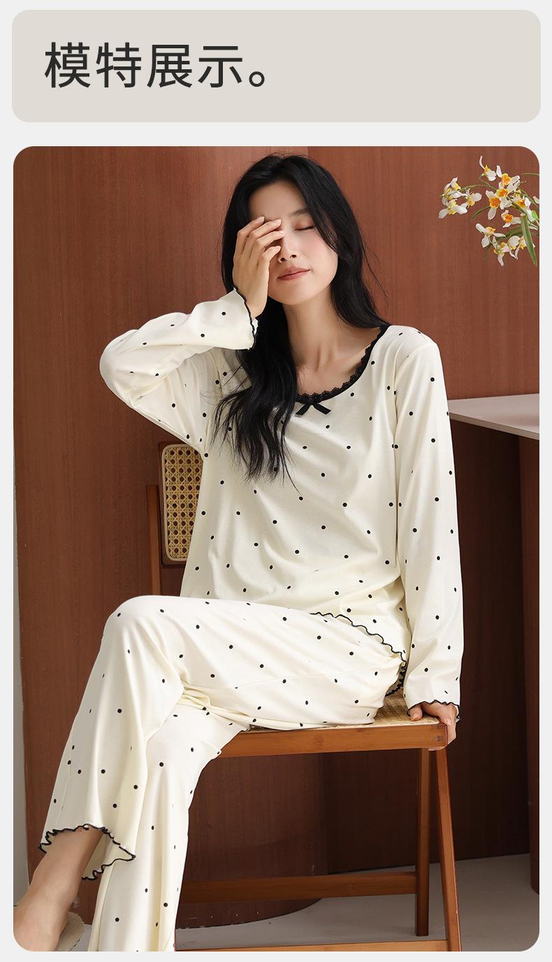 Pijamas nuevos de primavera y otoño para mujer Súper suaves, agradables para la piel, conjunto de algodón puro, cómodos, con lazo, cuello redondo, ropa para el hogar, se pueden usar al aire libre