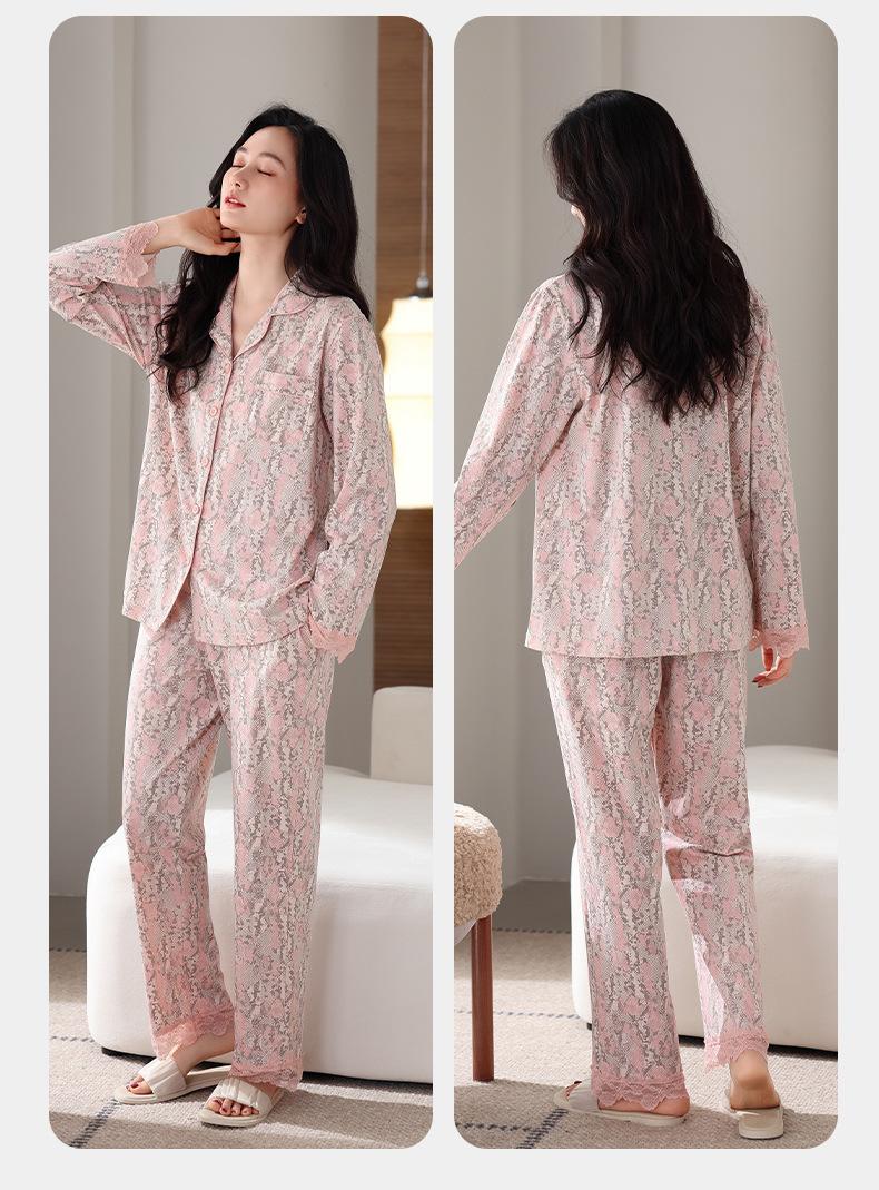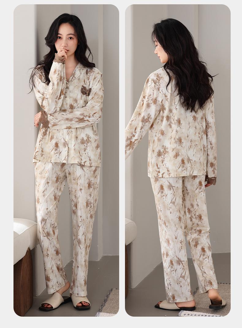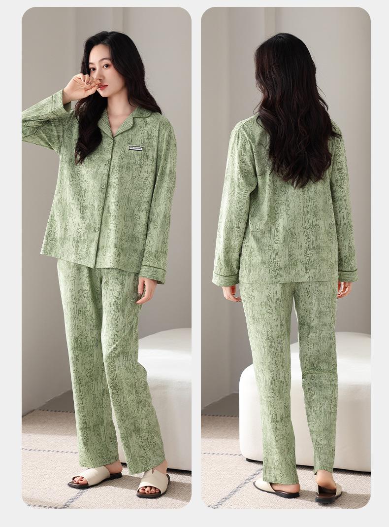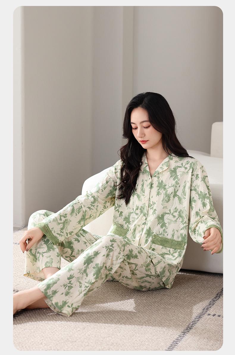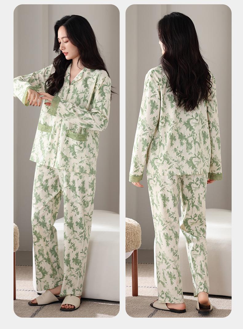 Pijama de Algodón Modale para Mujer Primavera y Otoño Manga Larga Otoño Suelto Talla Grande Delgado Mamá de Mediana Edad Ropa de Casa Traje