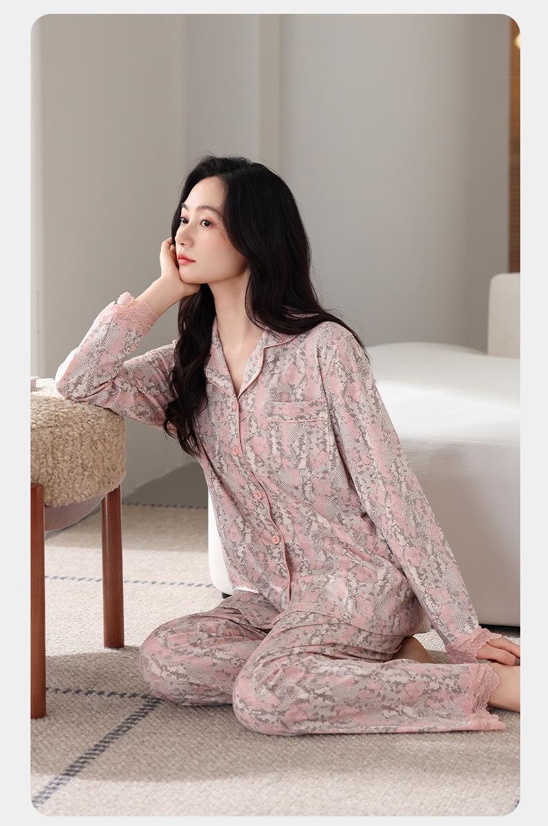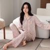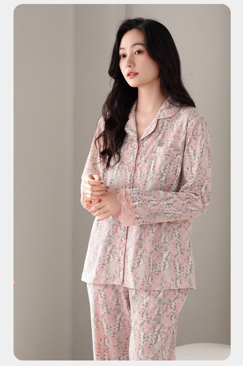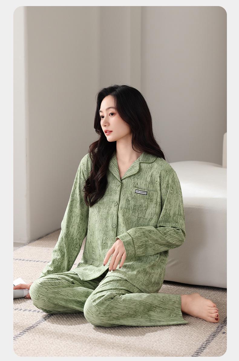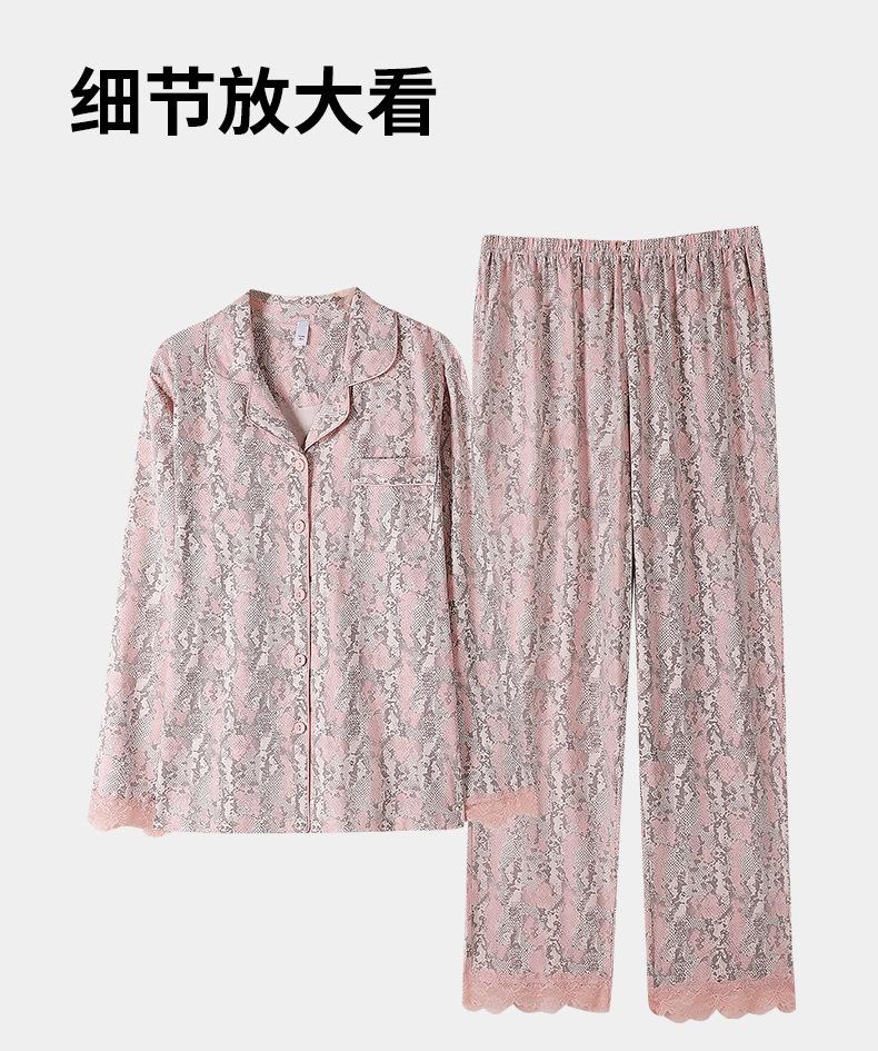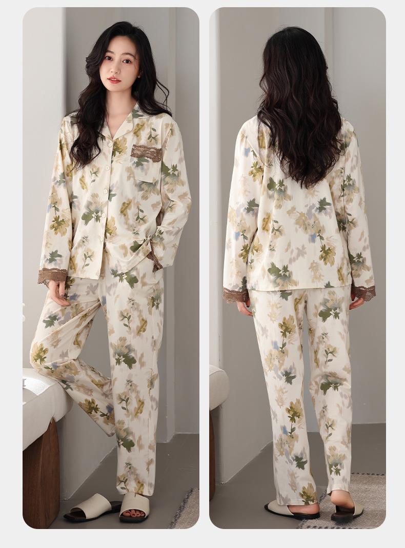 Pijama de Algodón Modale para Mujer Primavera y Otoño Manga Larga Otoño Suelto Talla Grande Delgado Mamá de Mediana Edad Ropa de Casa Traje