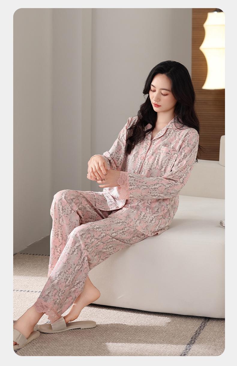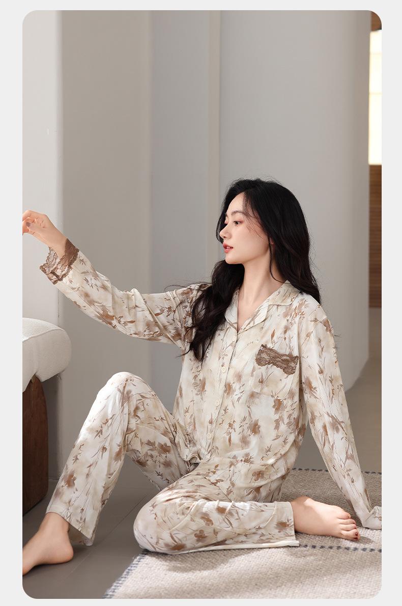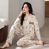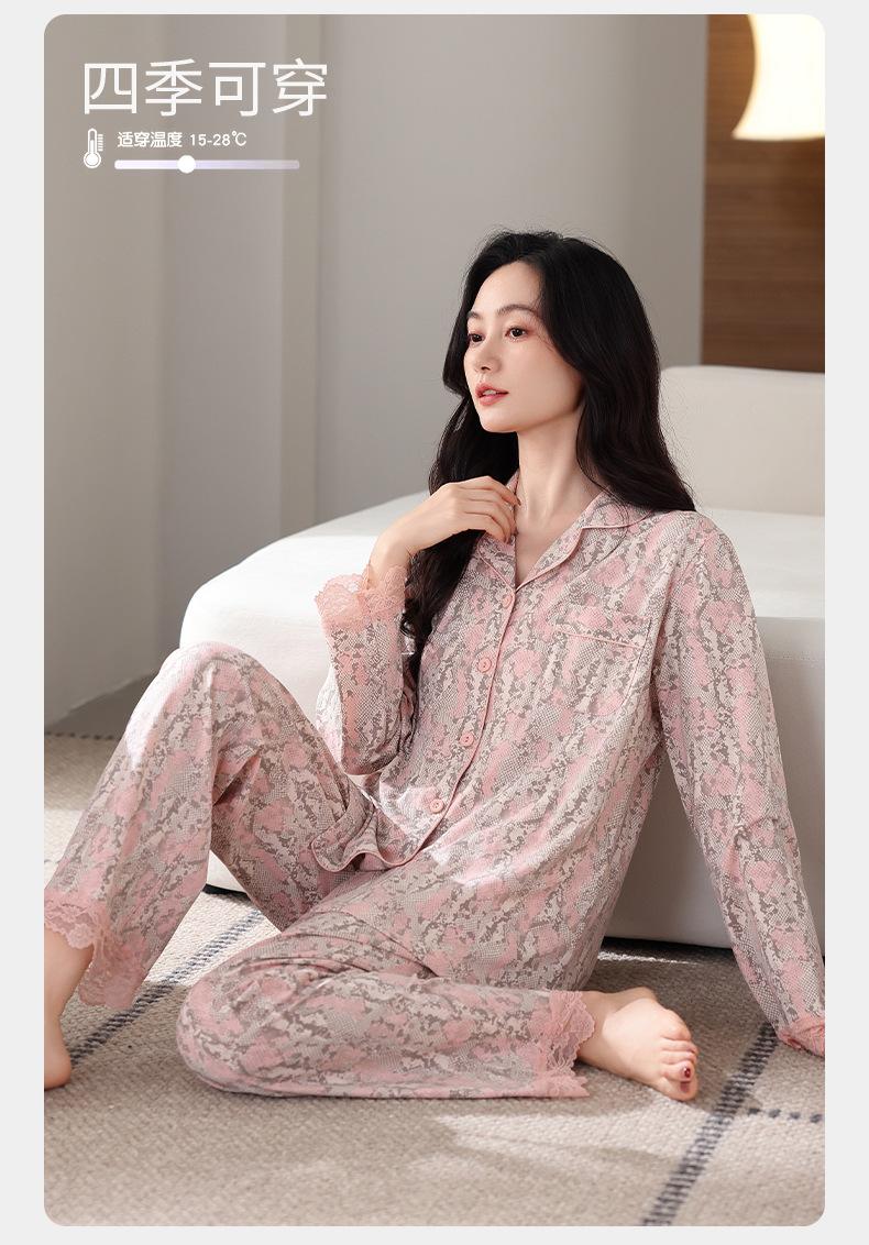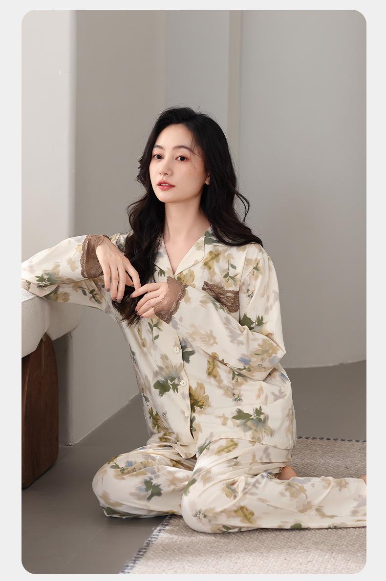 Pijama de Algodón Modale para Mujer Primavera y Otoño Manga Larga Otoño Suelto Talla Grande Delgado Mamá de Mediana Edad Ropa de Casa Traje