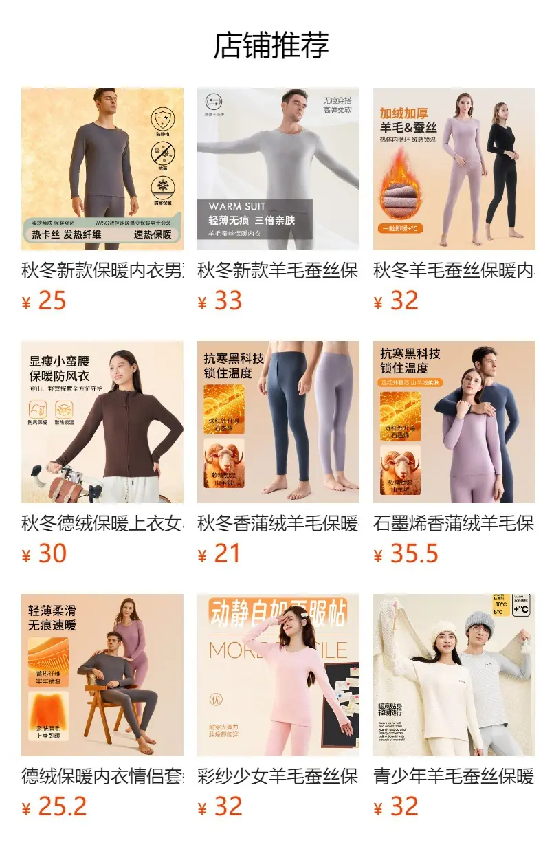 Ropa interior térmica Yalu, Ropa interior térmica Tingmei, Ropa interior térmica Hengyuanxiang, Ropa interior térmica Jiaonei, Ropa interior térmica Hongdou, Ropa interior térmica Maoren