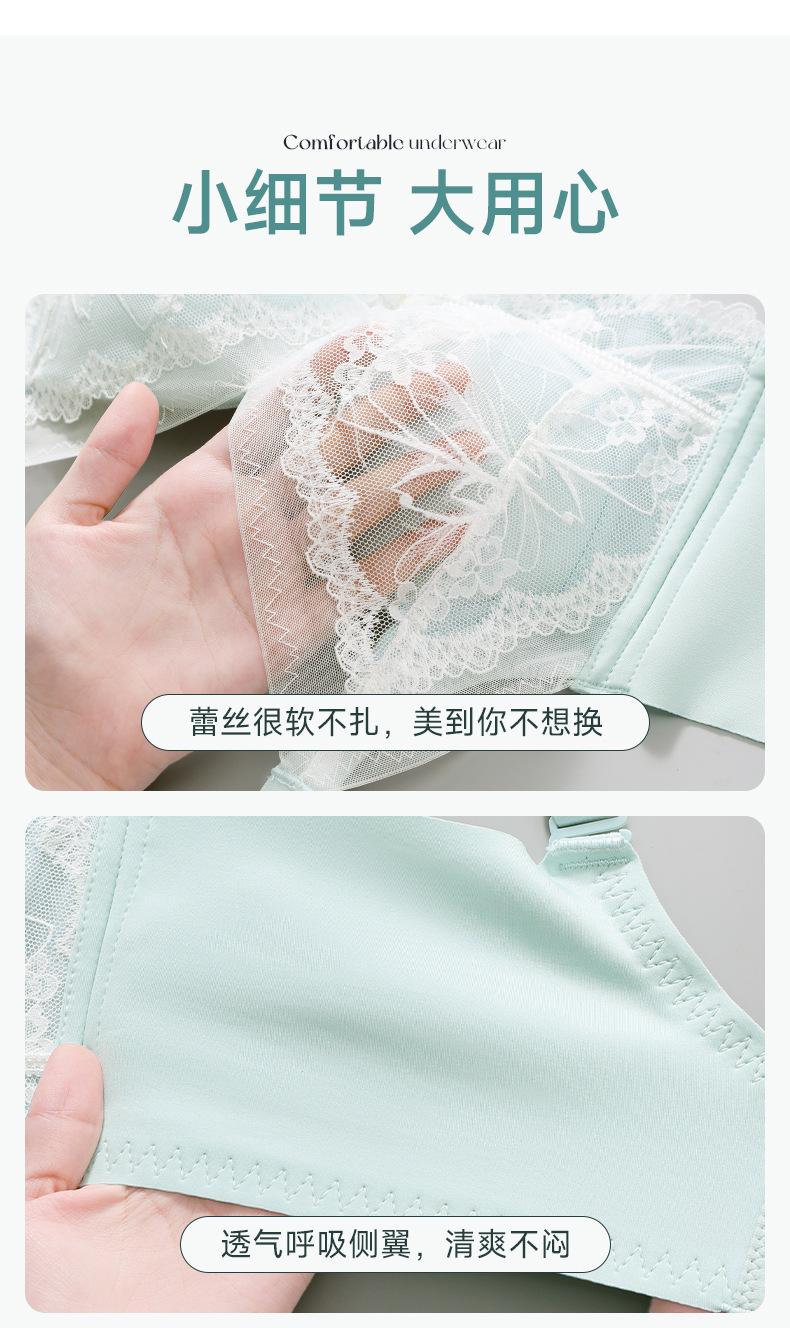 Compra Ropa Interior para Mujer Pecho Pequeño Push-up Ajustable Faja Anti-Caída Soporte Lateral Inalámbrico Sujetador de Encaje Sexy al por mayor en Joom.pro
