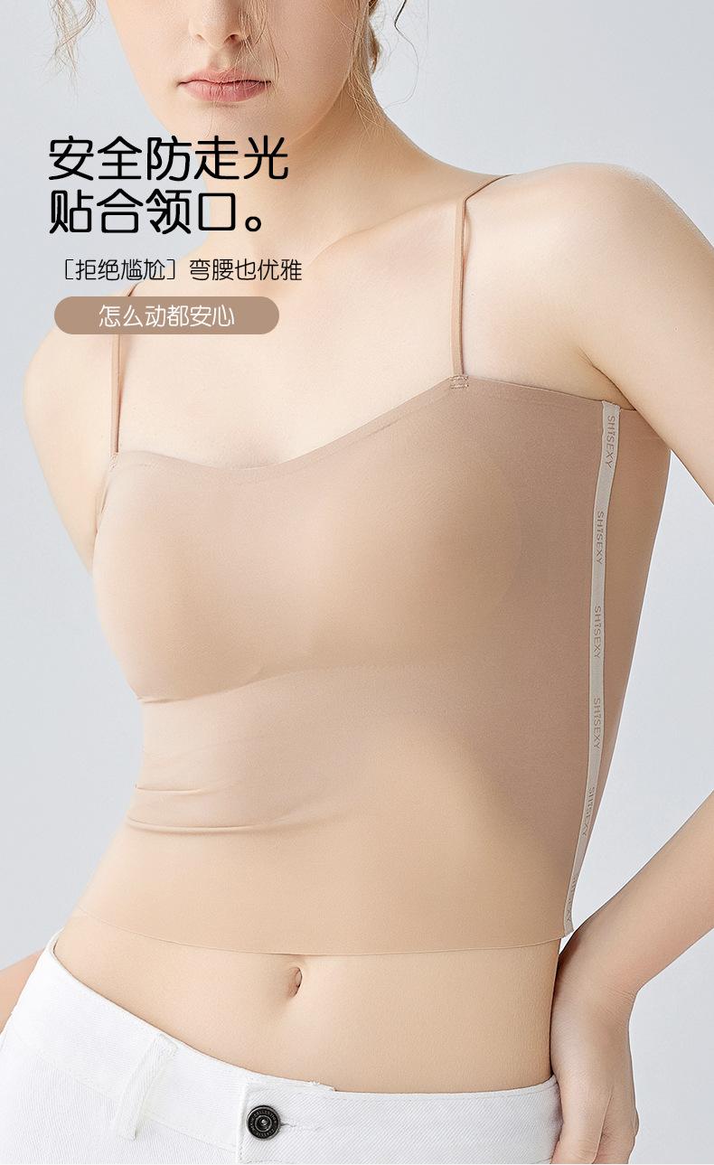 Verano sin costuras tirante hermosa espalda tubo sujetador ropa interior de mujer copa fija pecho pequeño recogido sin anillo de acero base chaleco sujetador