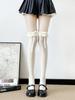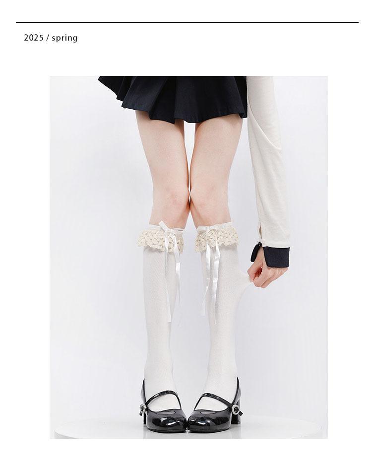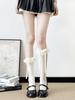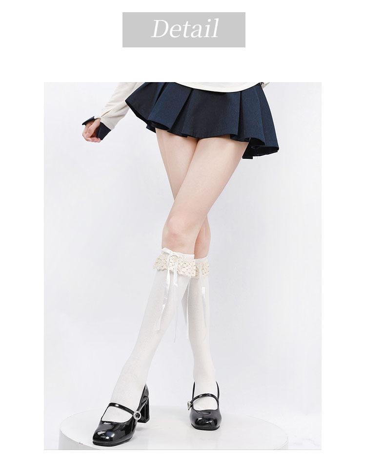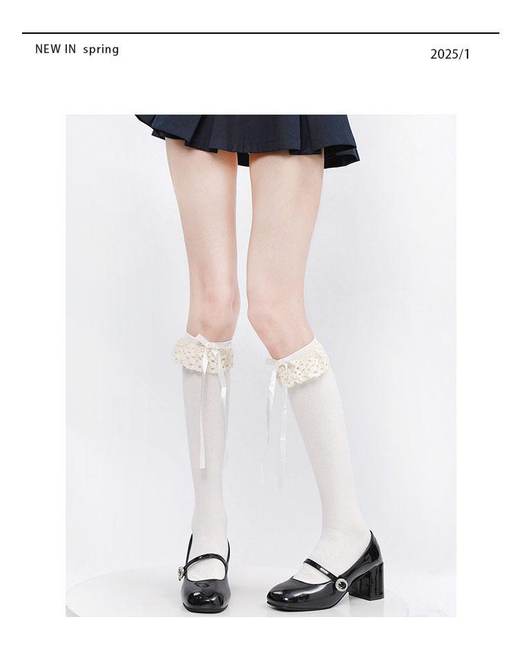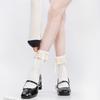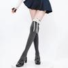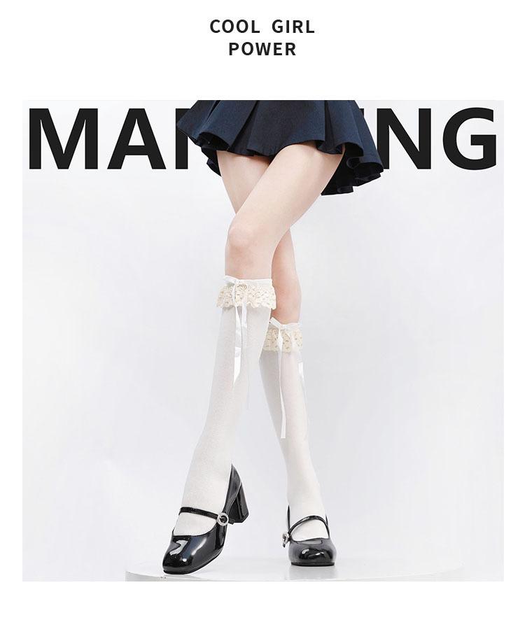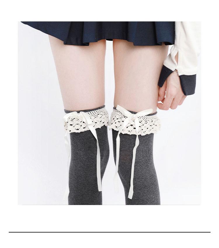 Primavera y Otoño Blanco Leche Lazo Calcetines JK Estilo Deseo Puro Calcetines hasta la Pantorrilla Adorno de Encaje Gris Calcetines hasta la Rodilla Algodón
