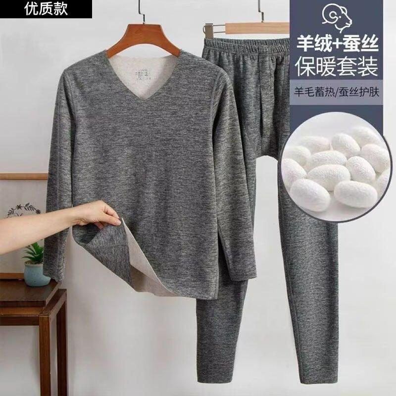 2025 Ropa Interior Nueva de Otoño e Invierno para Hombre Ropa Interior Térmica de Terciopelo para Mujer Talla Grande Conjunto de Ropa Interior Térmica para Mediana Edad al Por Mayor