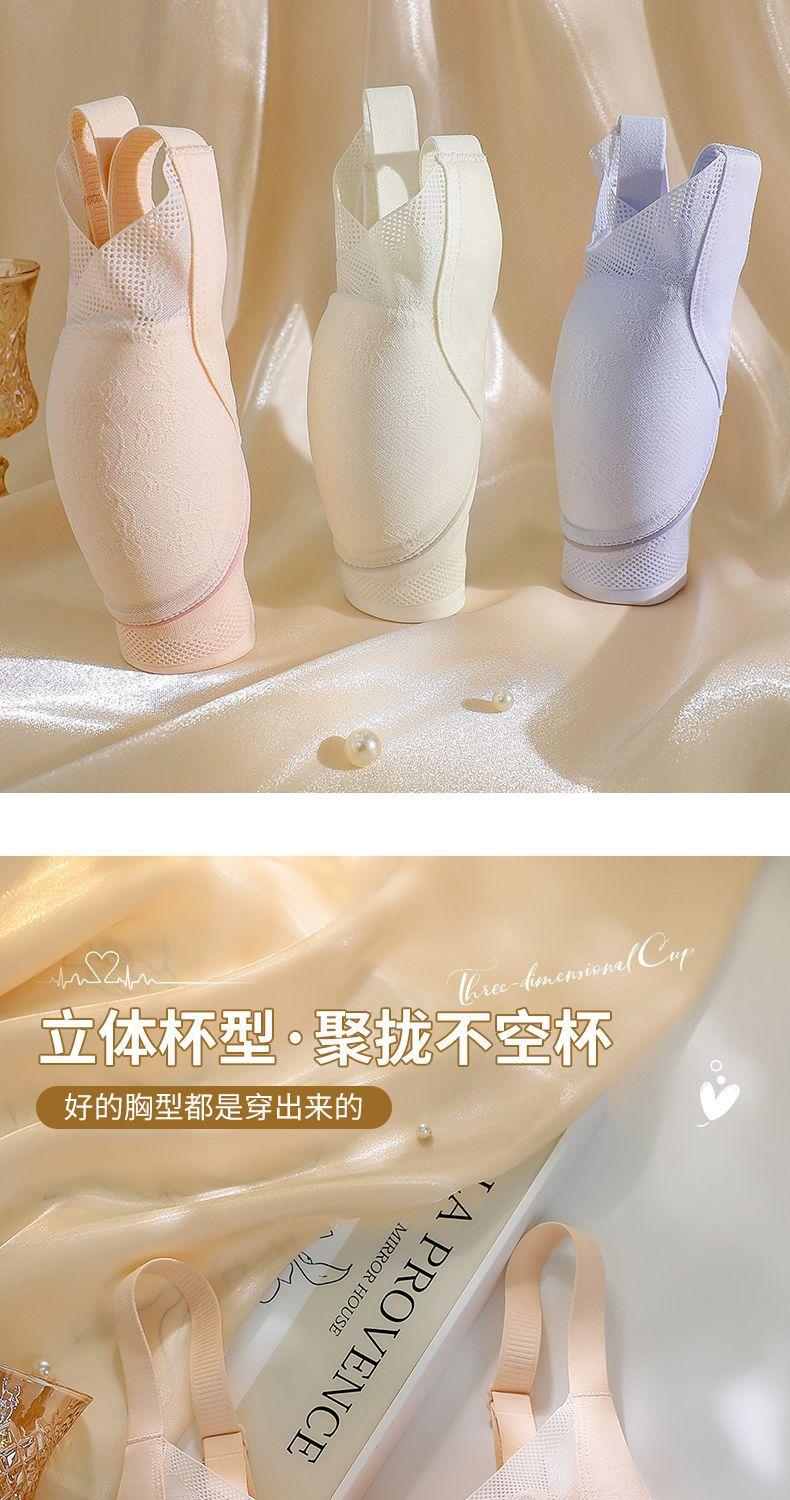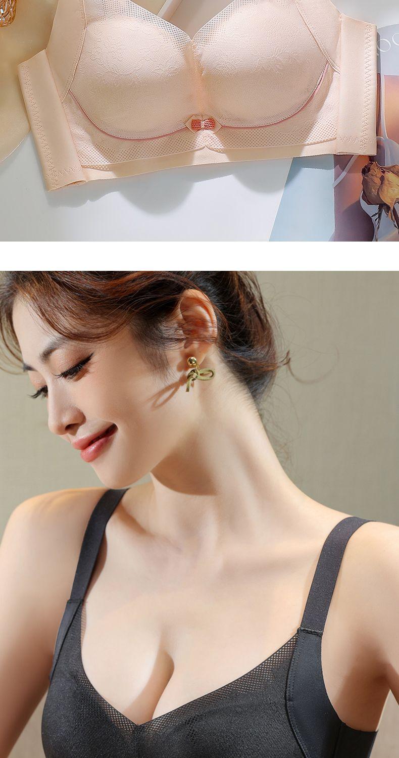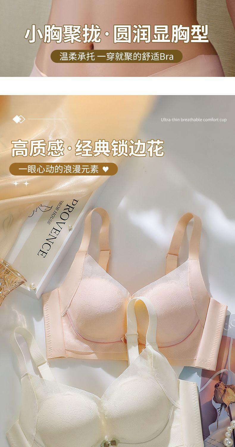 Ropa interior para mujer Top delgado Parte inferior gruesa Transpirable Sexy Suave Sujetador Pecho pequeño Reunido Inalámbrico Soporte lateral