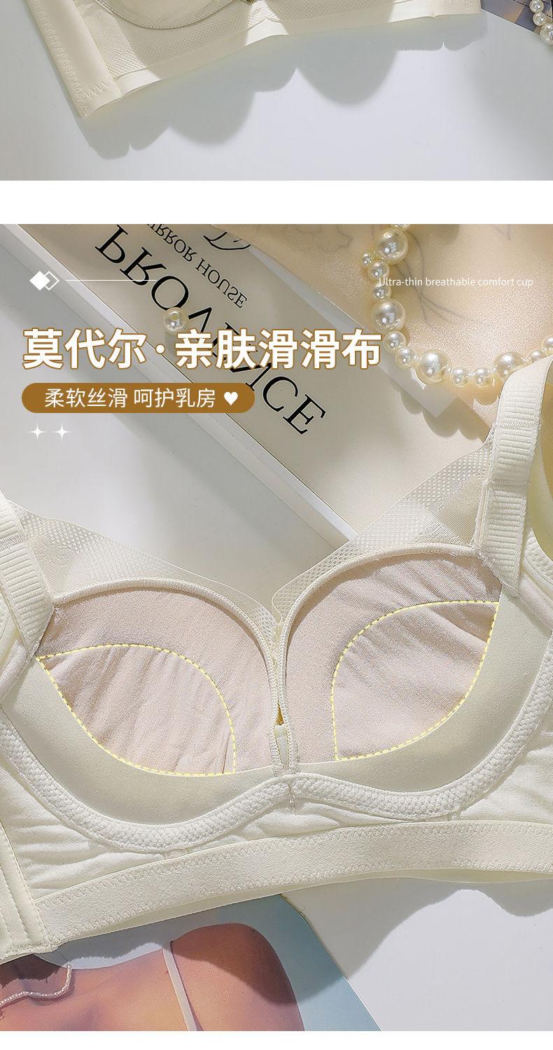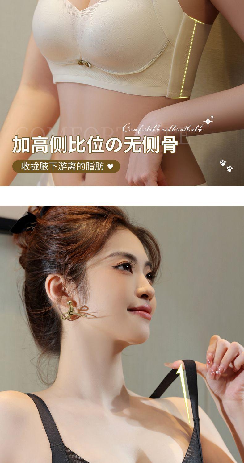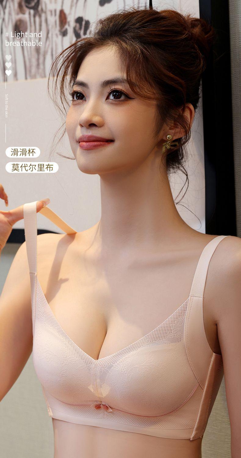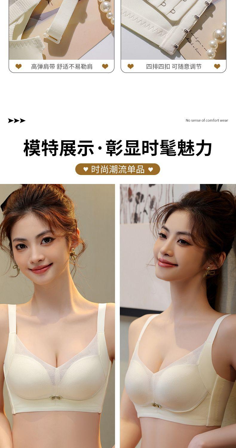 Ropa interior para mujer Top delgado Parte inferior gruesa Transpirable Sexy Suave Sujetador Pecho pequeño Reunido Inalámbrico Soporte lateral