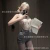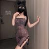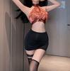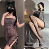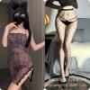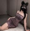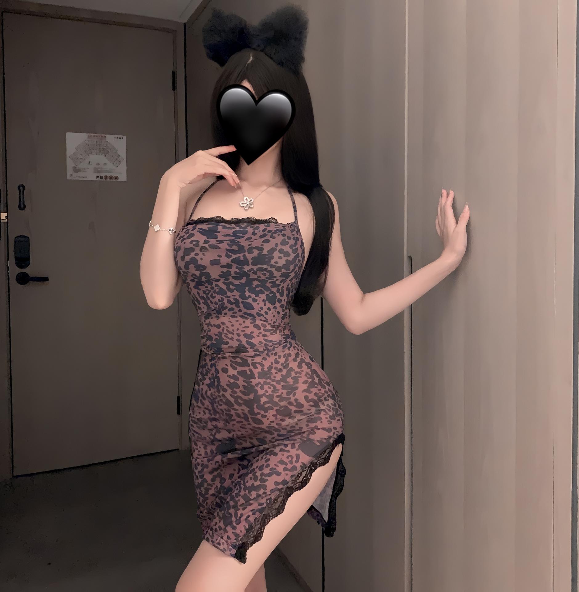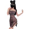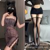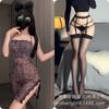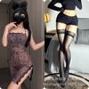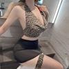 Sexy vestido camisola con estampado de leopardo encaje tentación falda con abertura ajustada a las caderas conjunto de uniforme de discoteca caliente
