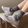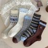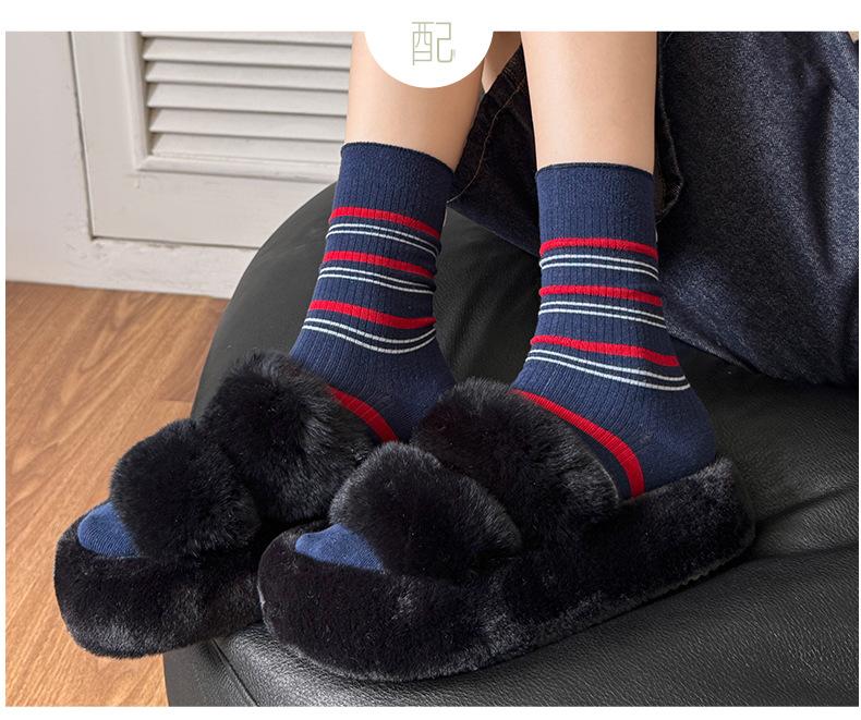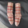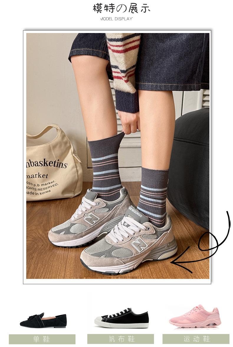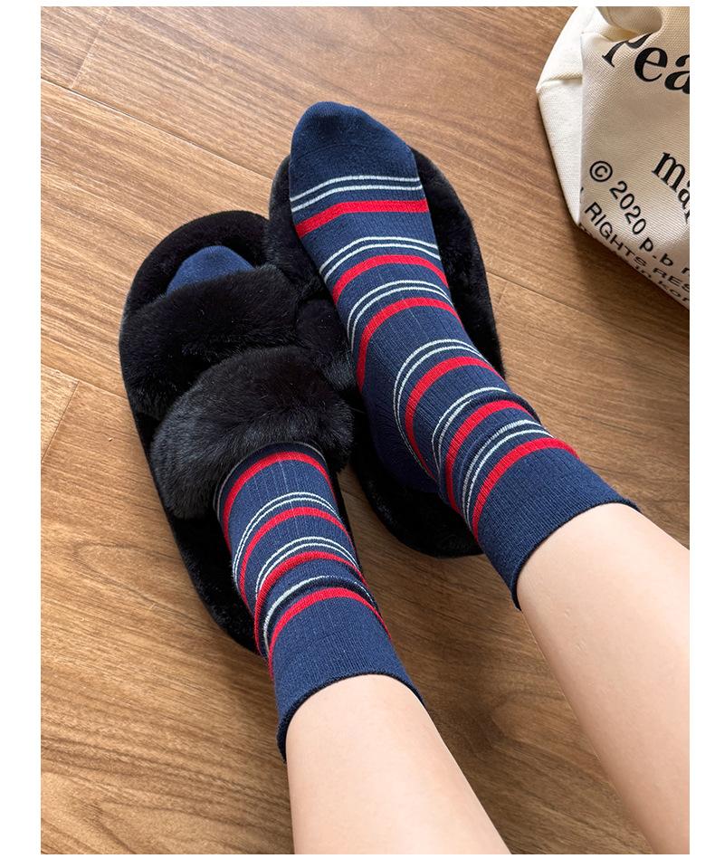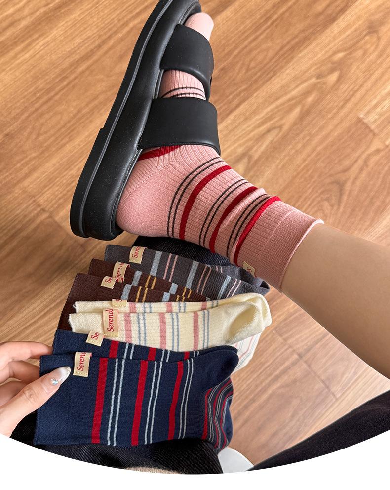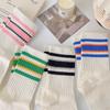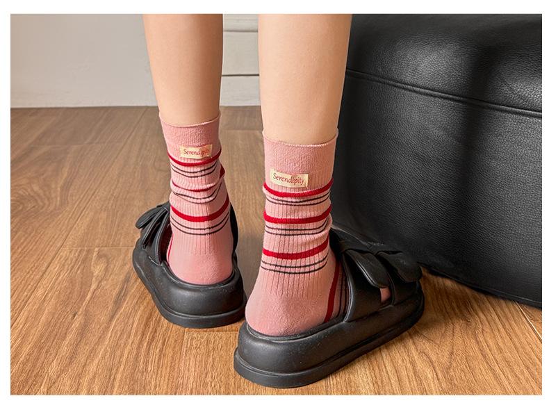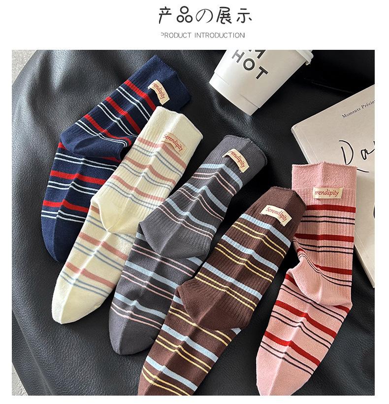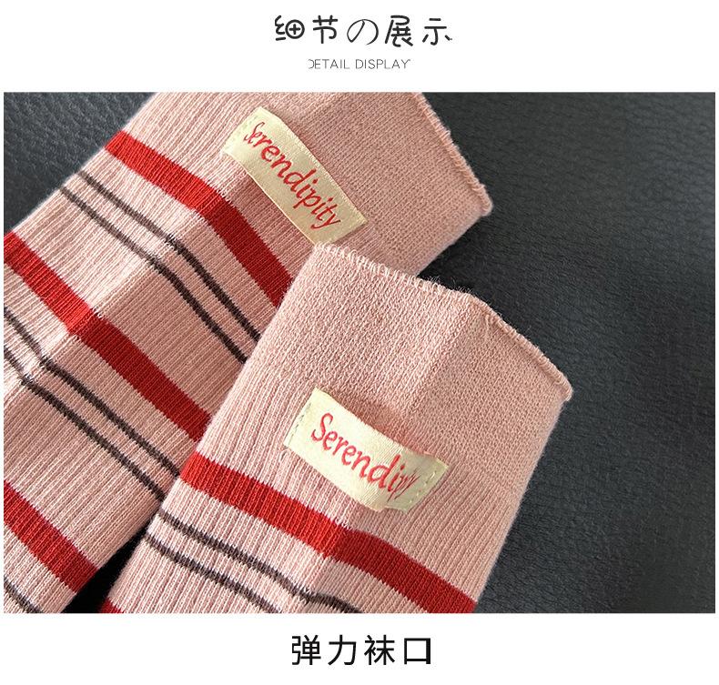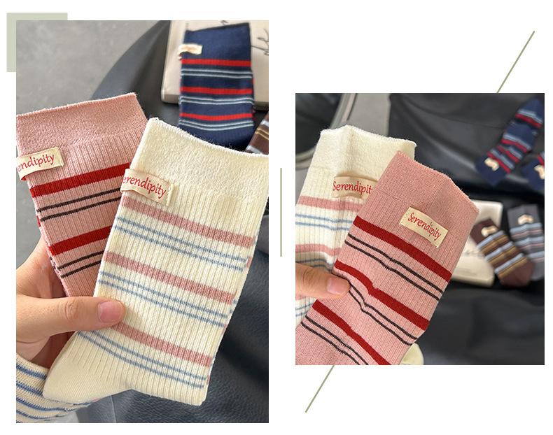 Calcetines de rayas Mujer Algodón puro Doble boca Media pantorrilla Otoño e invierno Etiqueta de tela Estilo coreano Calcetines largos Calcetines con volantes Calcetines deportivos Hasta la rodilla