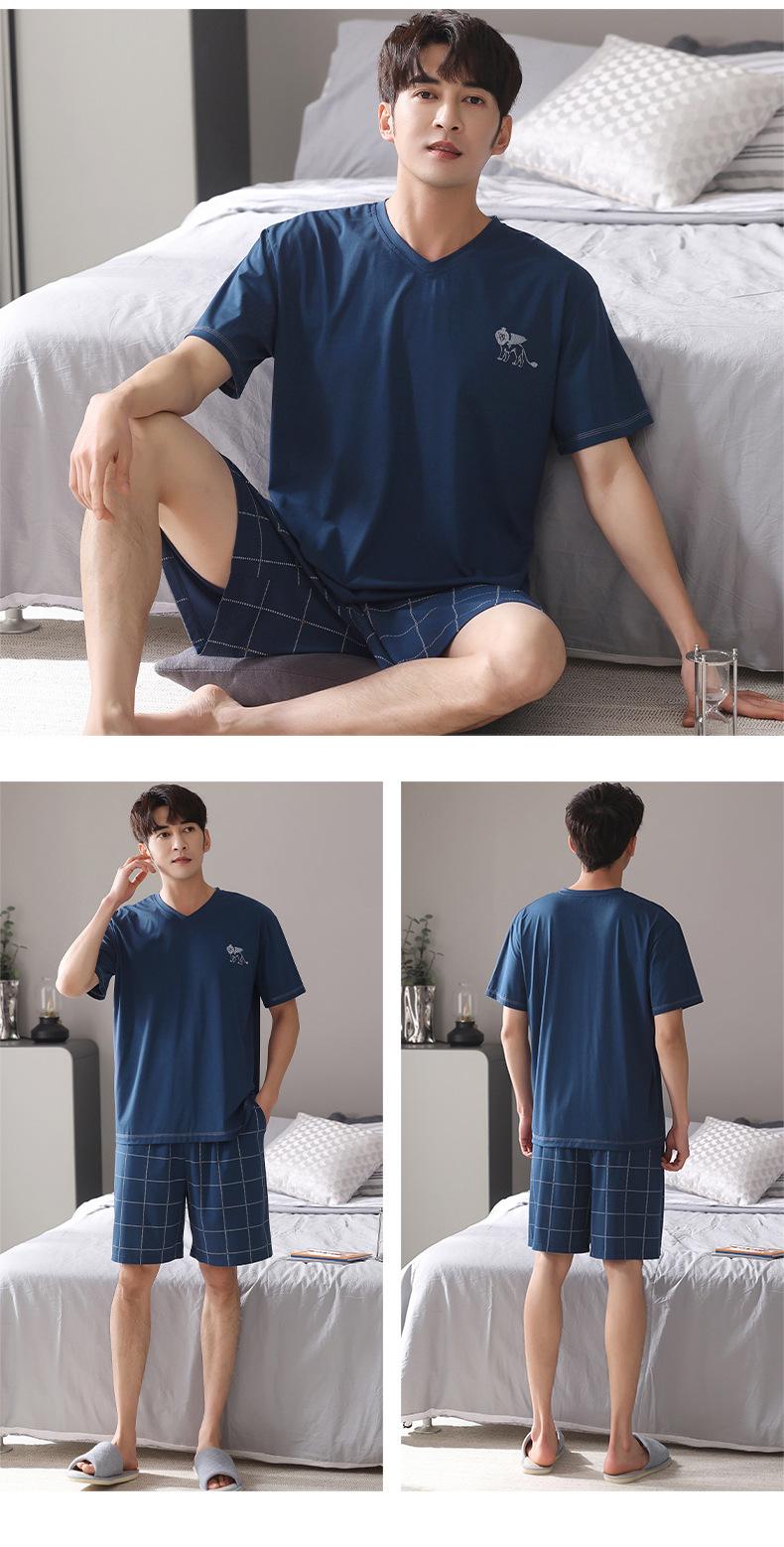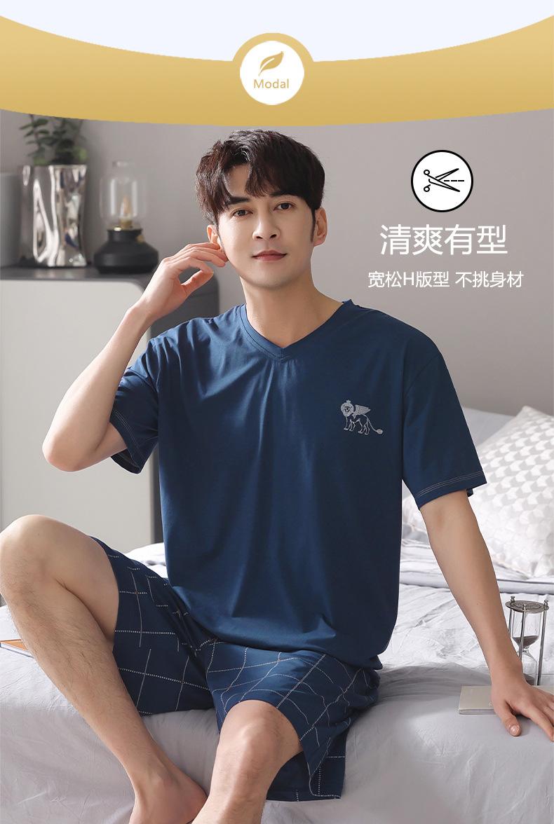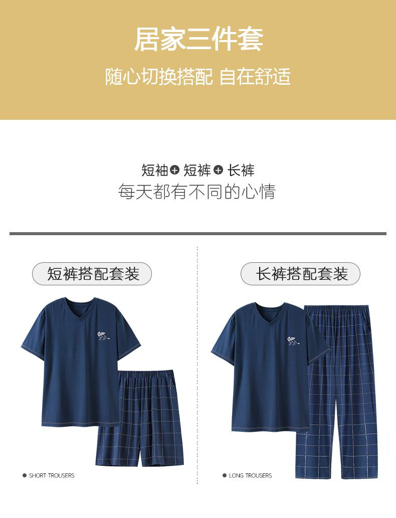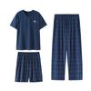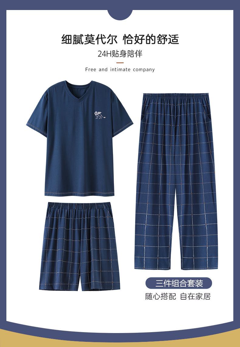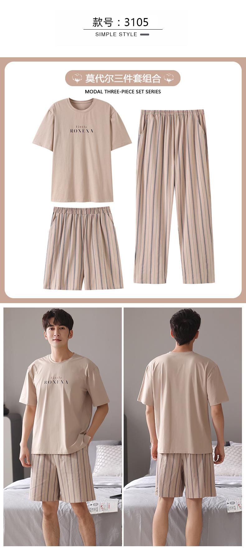 Pijama para Hombre Verano Modal Manga Corta Pantalones Delgados Verano Talla Grande Verano Manga Media Ropa para el Hogar Traje de Tres Piezas