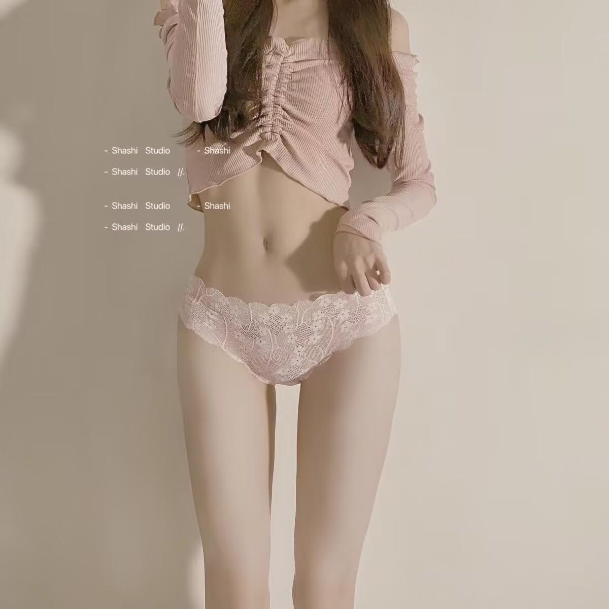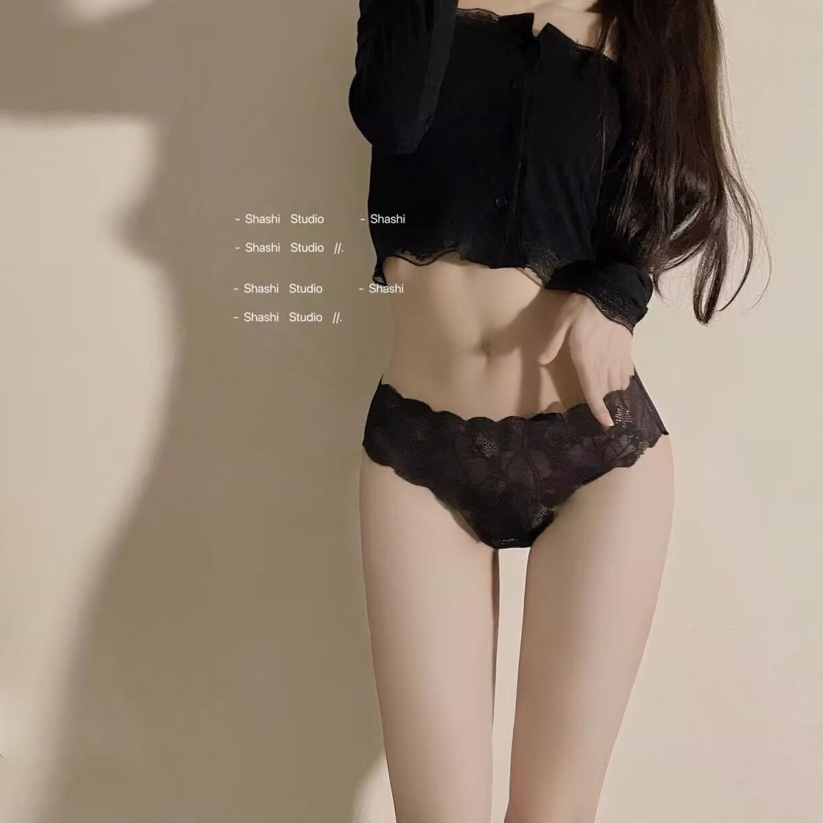 Ropa interior de encaje sin costuras para niñas verano delgada 2024 nueva señoras tiro medio transpirable sexy calzones de viento puro