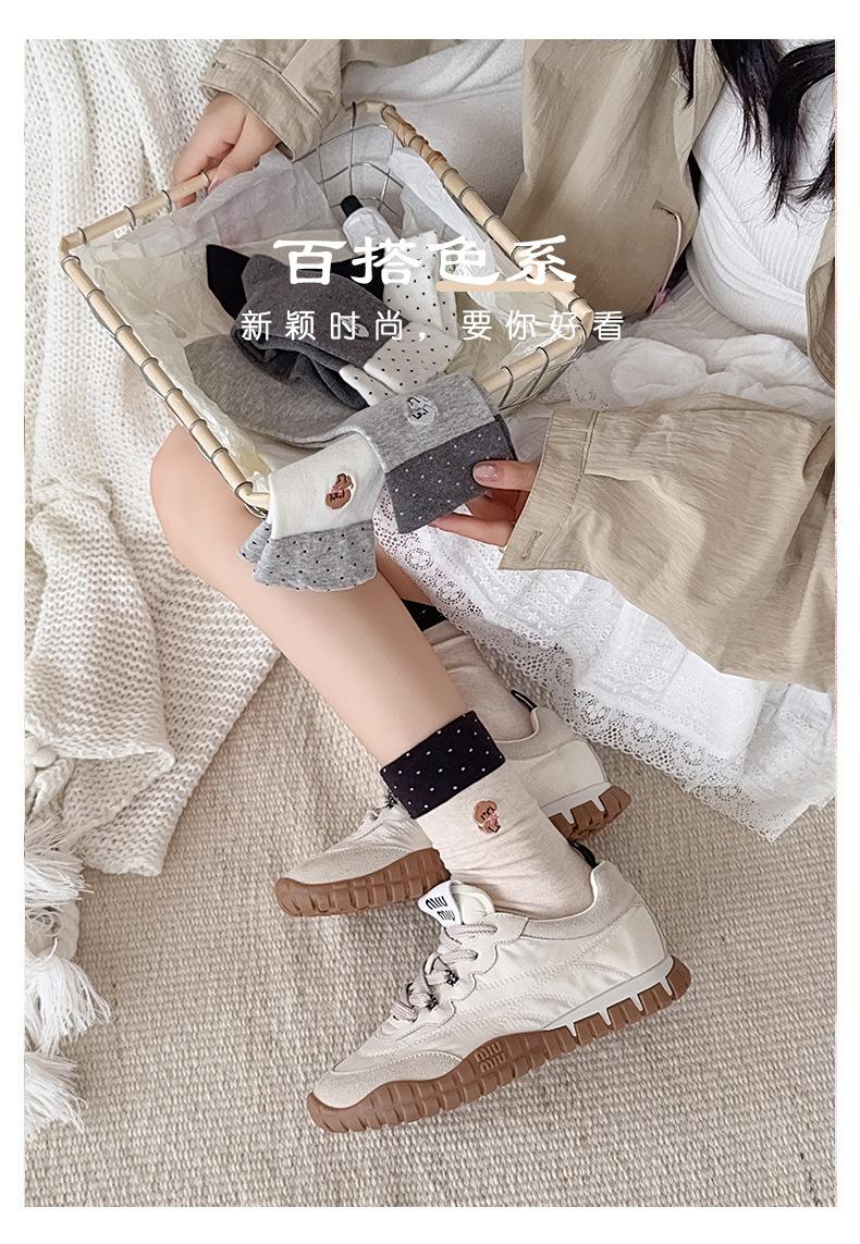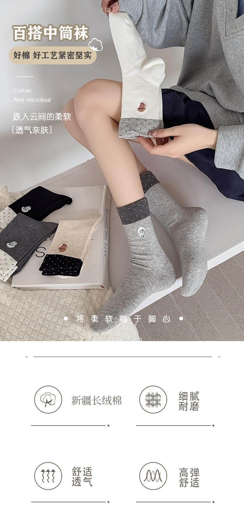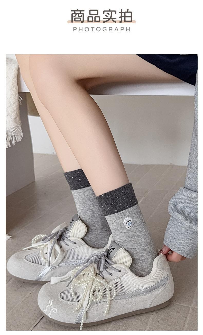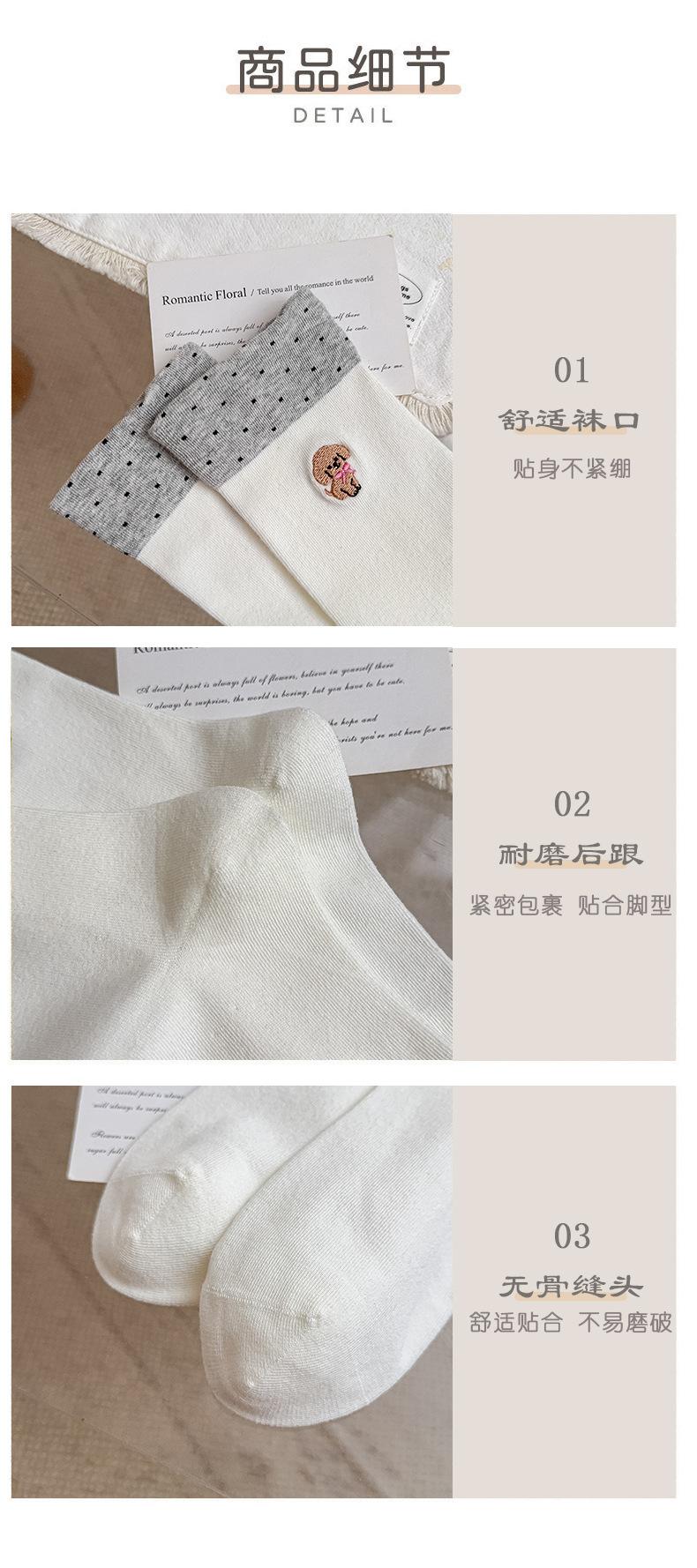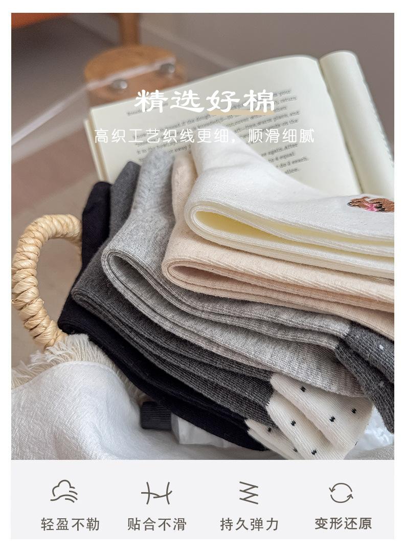 Calcetines de Media Caña para Mujer Corazón Bordado Color Sólido Algodón Peinado Calcetines para Mujer Simples Cómodos Transpirables Sin Ajuste Recogidos
