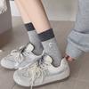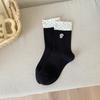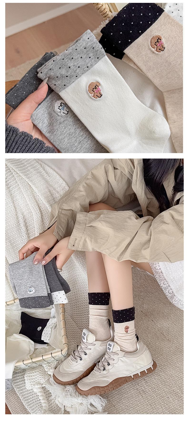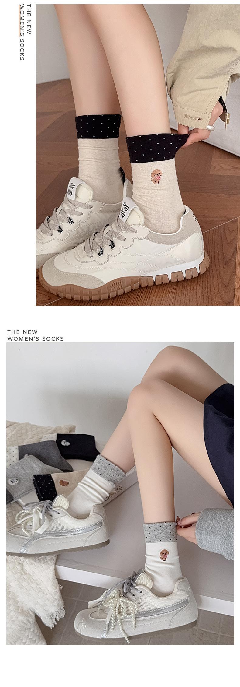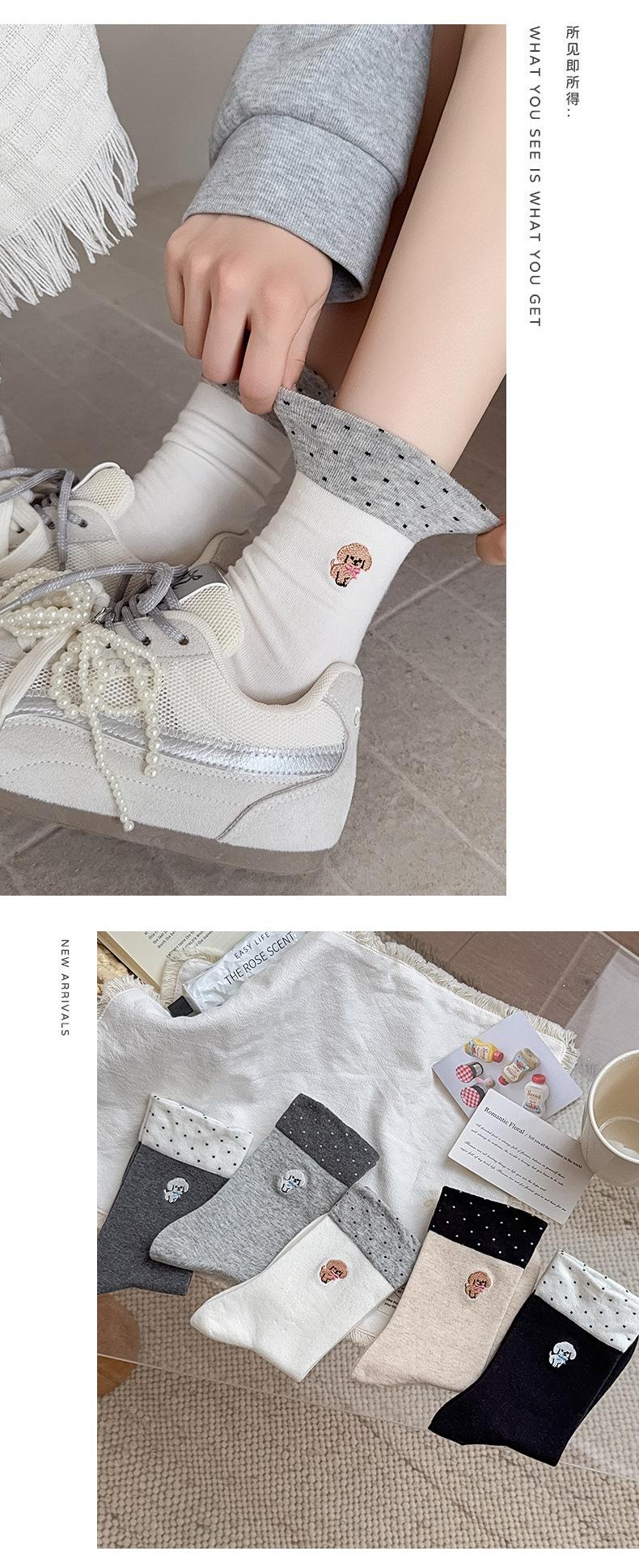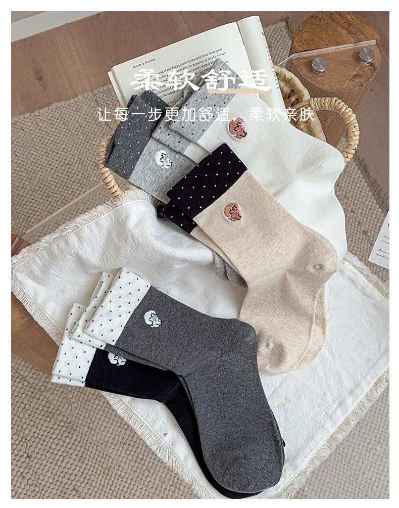 Calcetines de Media Caña para Mujer Corazón Bordado Color Sólido Algodón Peinado Calcetines para Mujer Simples Cómodos Transpirables Sin Ajuste Recogidos