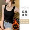 Chaleco cálido cepillado de otoño e invierno con almohadillas en el pecho, ropa interior de realce sin costuras, capa base versátil para exterior, top de color sólido de corte ajustado para mujer