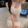 Ropa Interior Erótica Tidal para Mujer Falda Ajustada a las Caderas Ol Sexy Halter Escote Bajo Encaje Calado Pijama Conjunto Transparente Deseo Puro