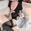 Black (top + hip skirt + t pants), Black + black fishnet stockings, Black + black stockings, Black + black open socks
