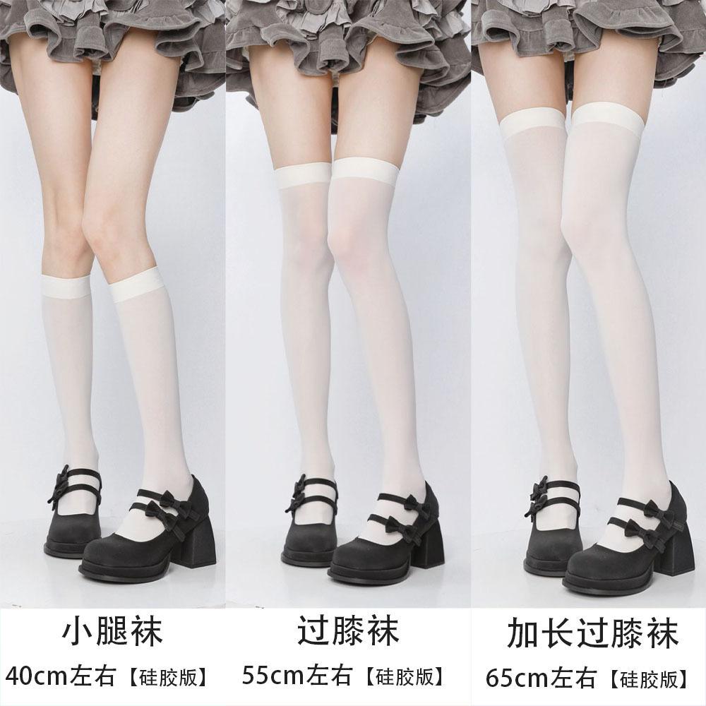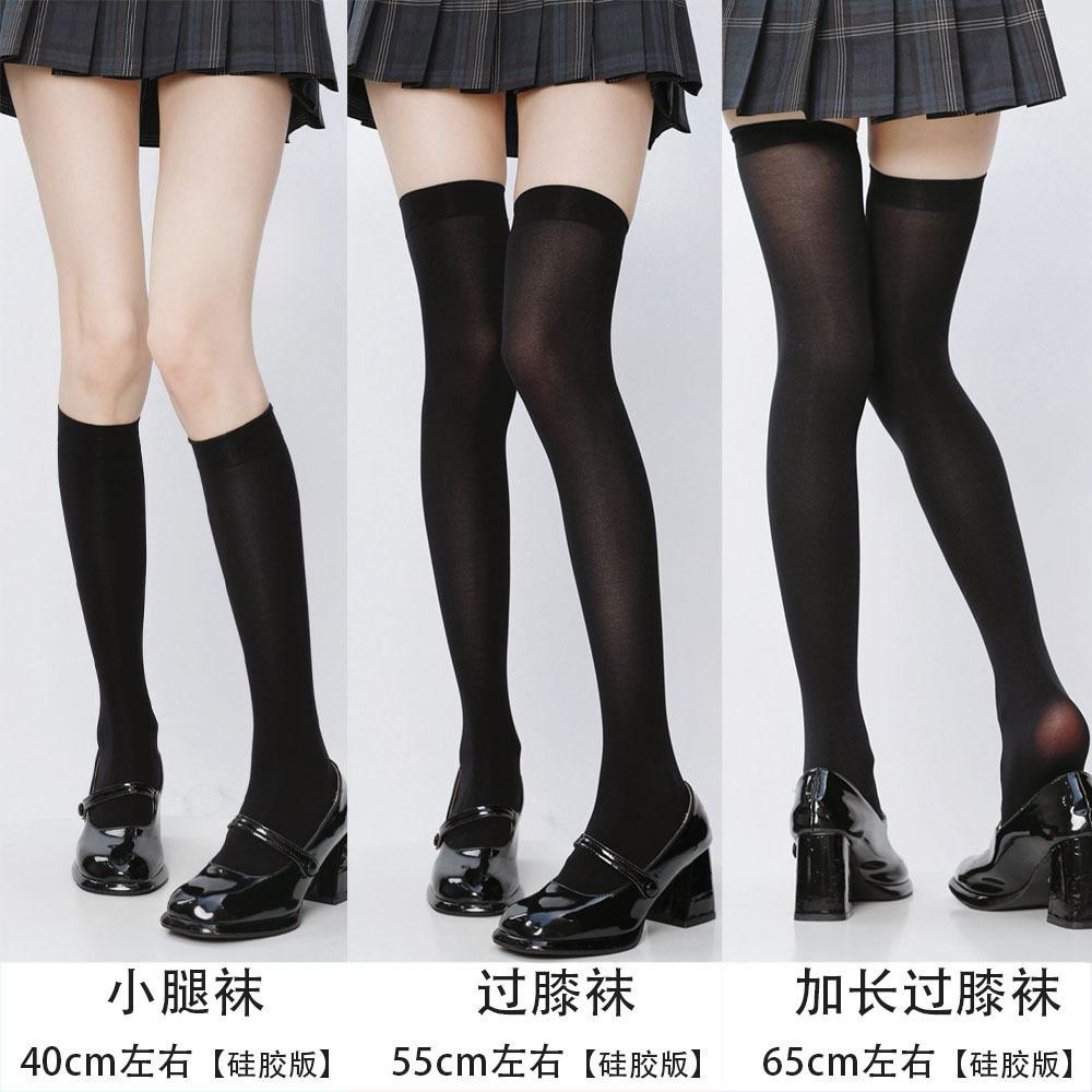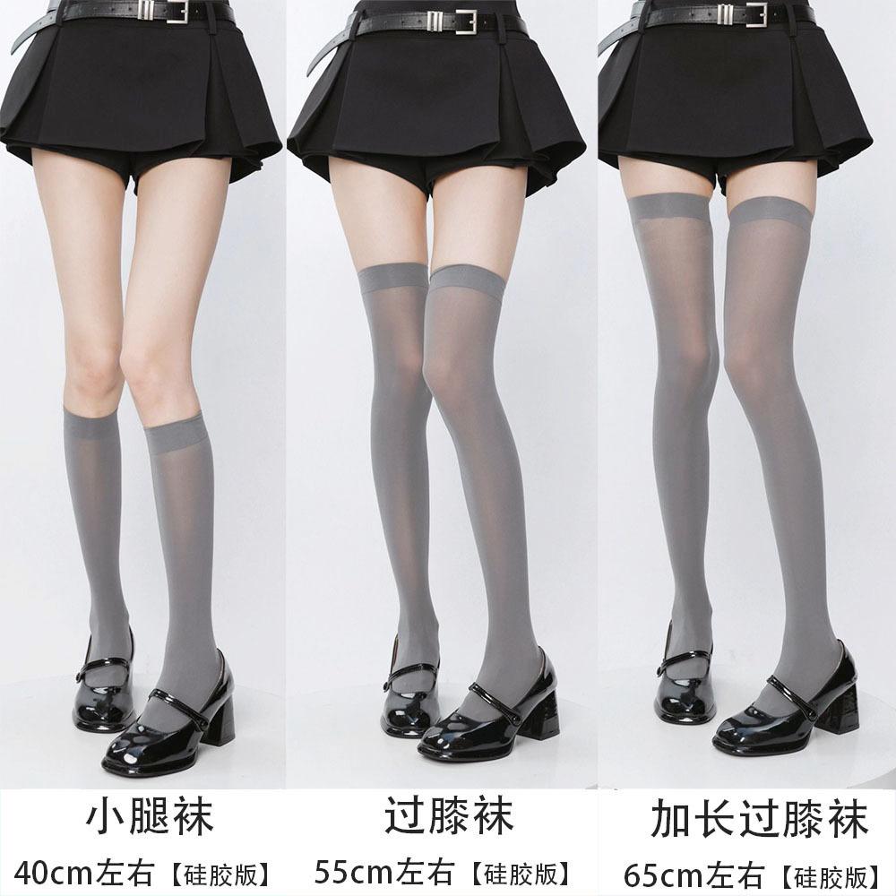 Calcetines JK Delgados de Otoño Gris Terciopelo Calcetines Hasta la Rodilla Pata de Gato Antideslizantes de Silicona Medias Negras de Micro-Presión para la Pantorrilla