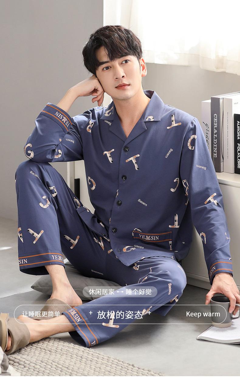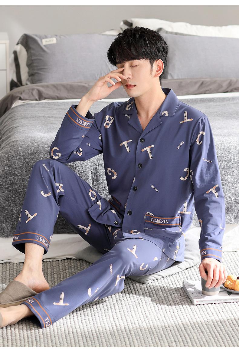 Pijama para hombre Primavera y Otoño Algodón Puro Manga Larga Otoño 2025 Nuevo Conjunto de Ropa para el Hogar Estilo Otoño para Hombre