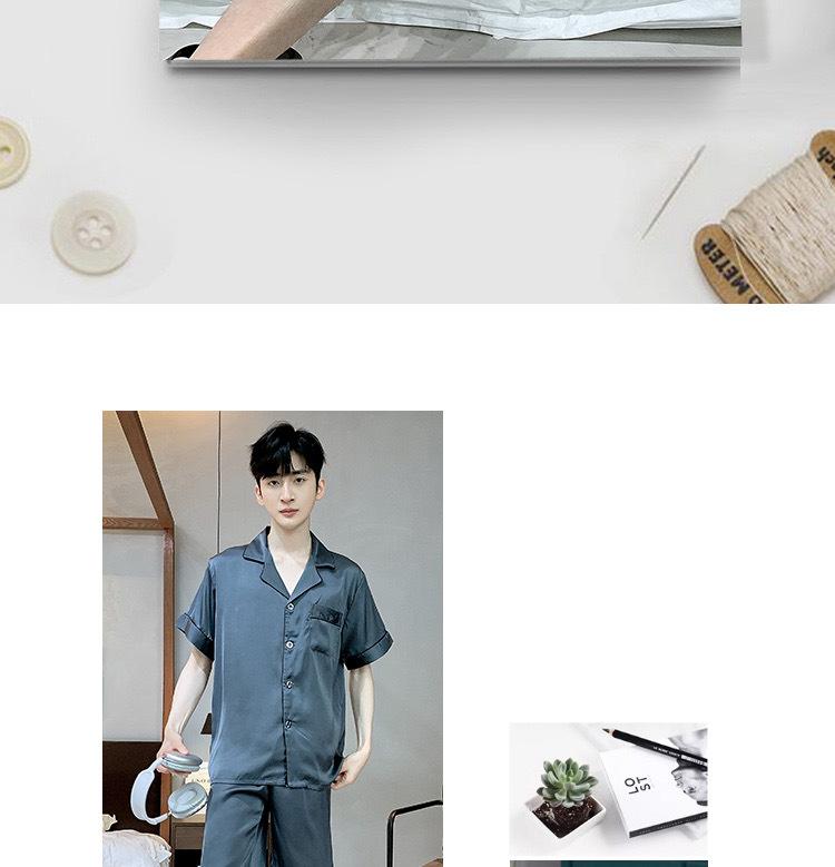 Pijama de Verano para Hombre Seda de Imitación Traje de Verano de Manga Corta para Hombre Fino Primavera y Otoño Ropa de Casa de Seda 2025