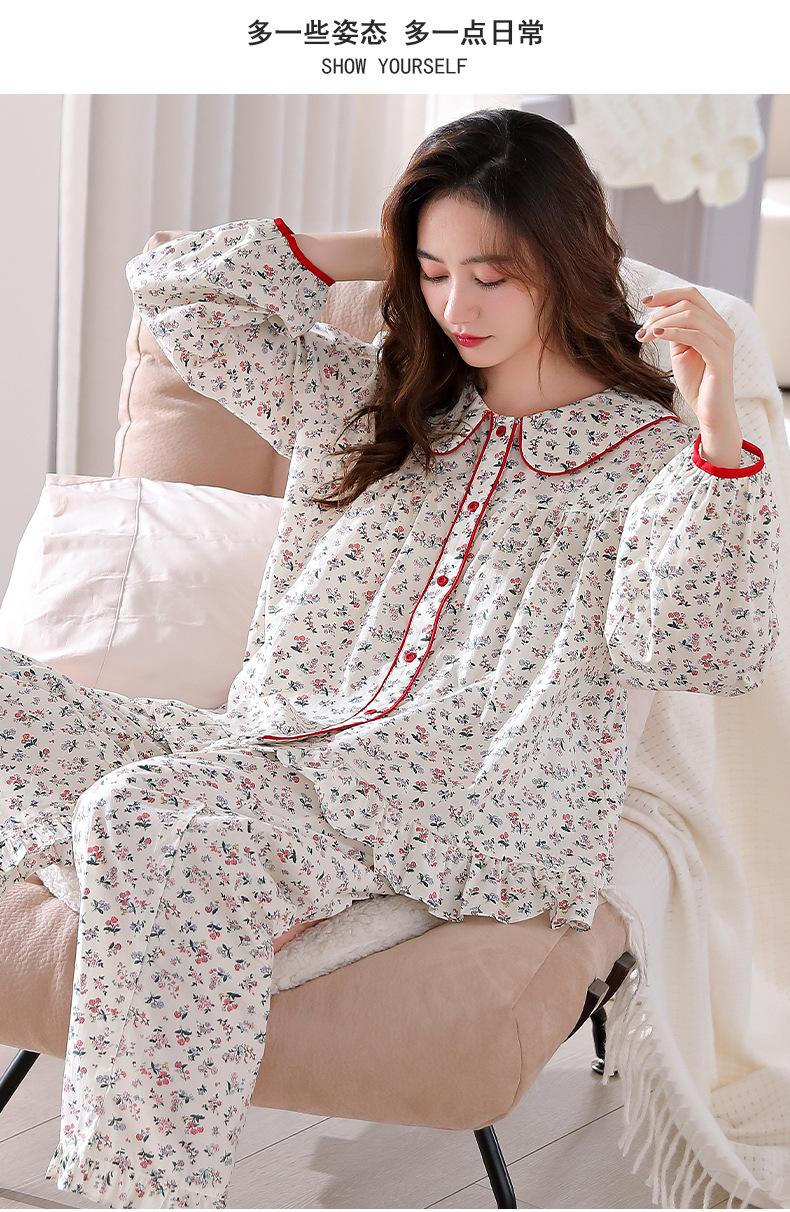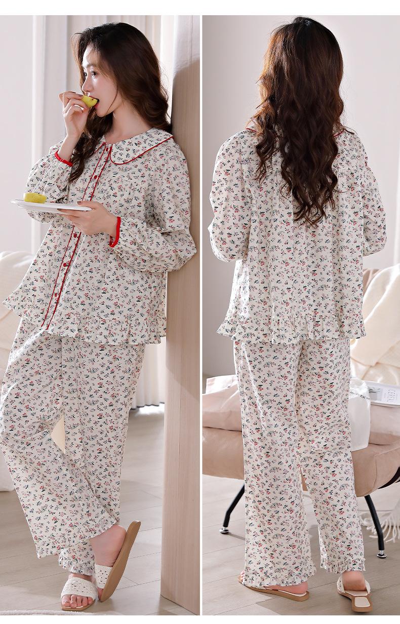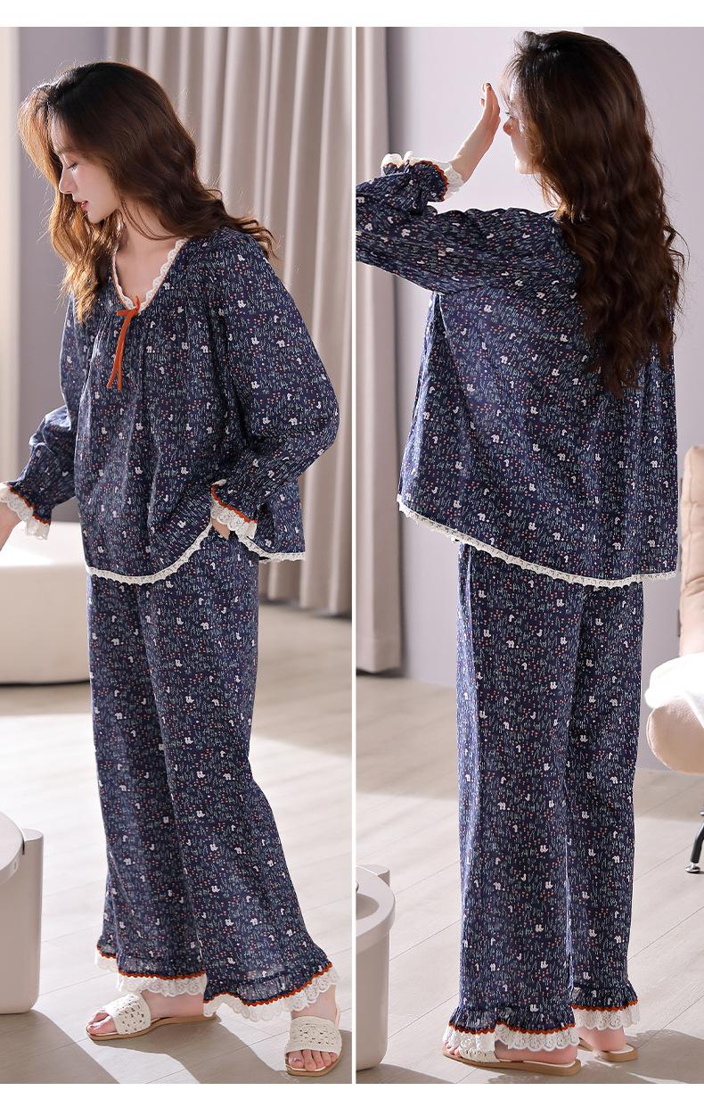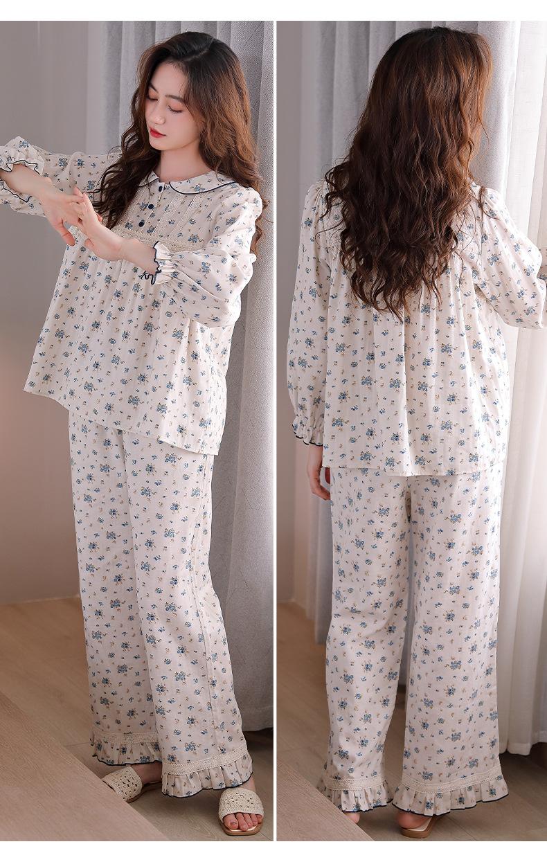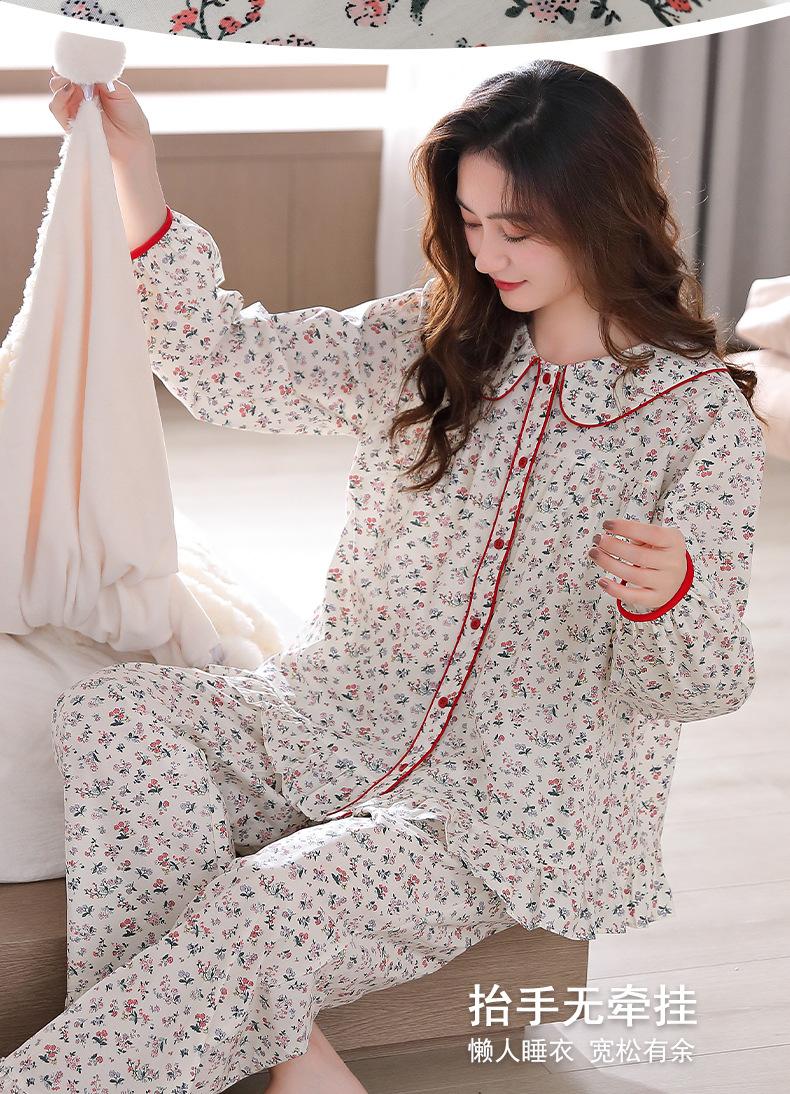 Pijama de algodón de manga larga para mujer, primavera y otoño, nuevo otoño 2024, traje fino de algodón para otoño e invierno para estar en casa