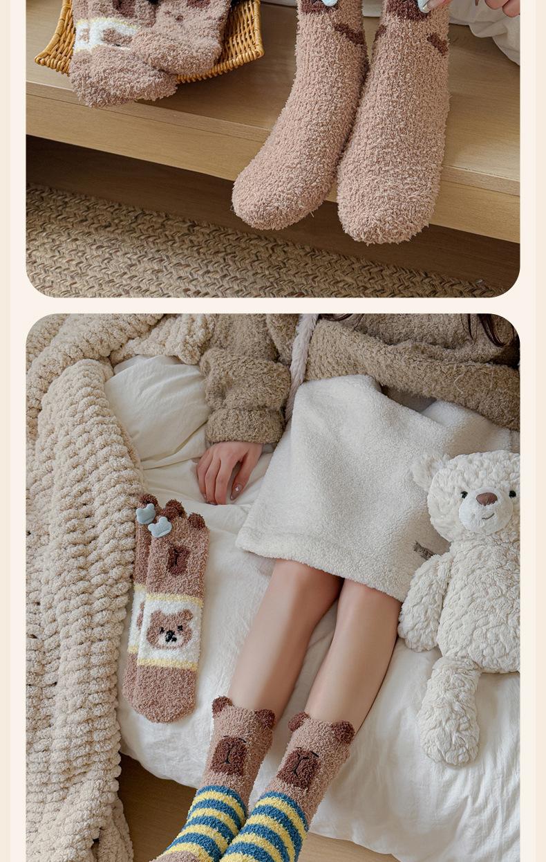 Calcetines de Invierno de Forro Polar Coral para Mujer, Calcetines Gruesos Cálidos para Piso, Calcetines Lindos de Dibujos Animados para Dormir