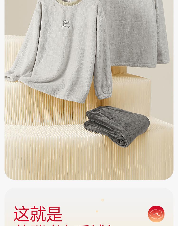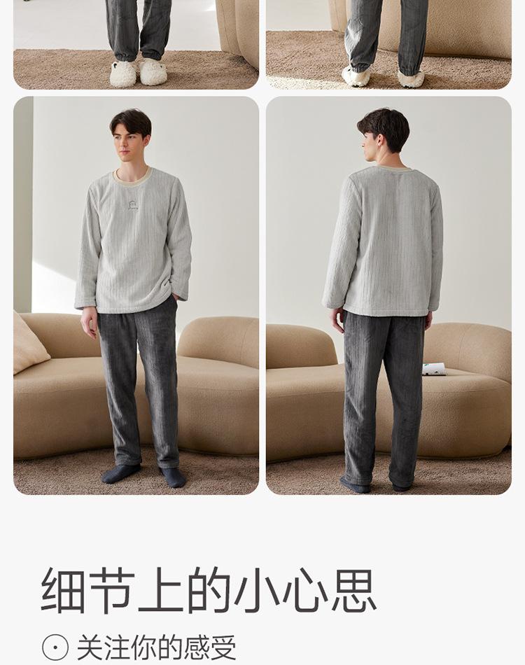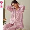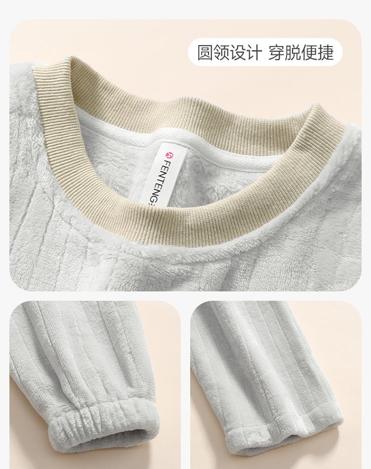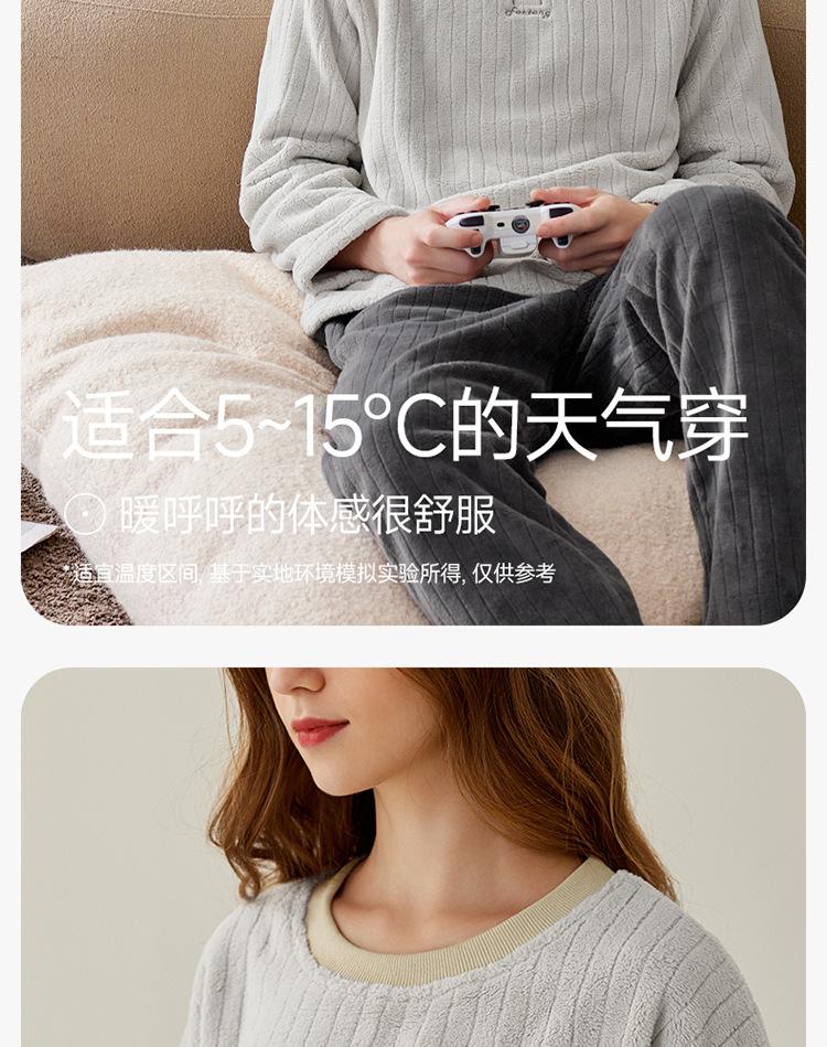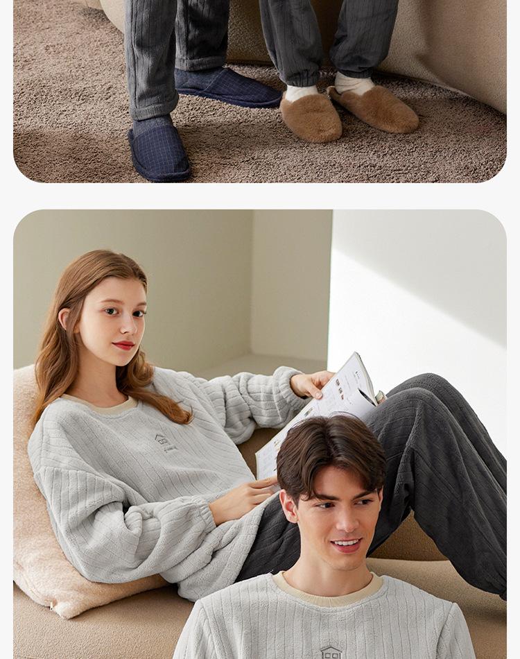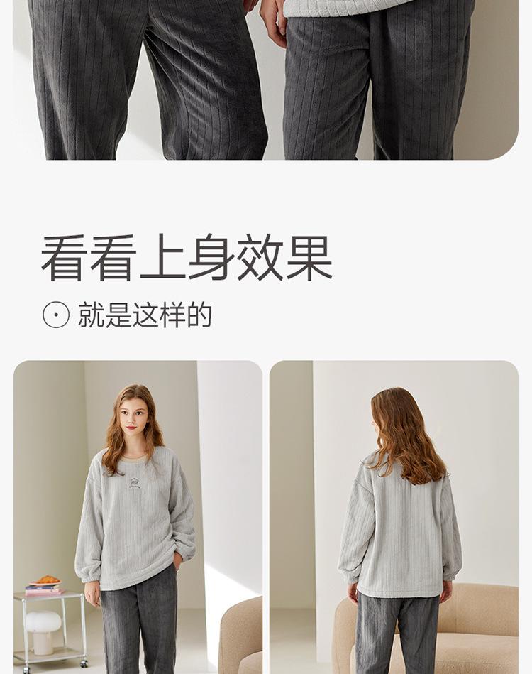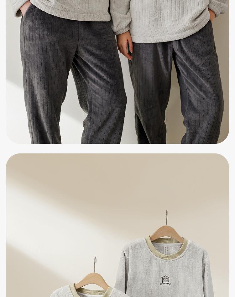 Fenteng [Forro Polar Casual de Calentamiento Rápido] Pijamas de Pareja Franela Otoño/Invierno Más Terciopelo Más Grueso Set para Mujer Ropa para Estar en Casa