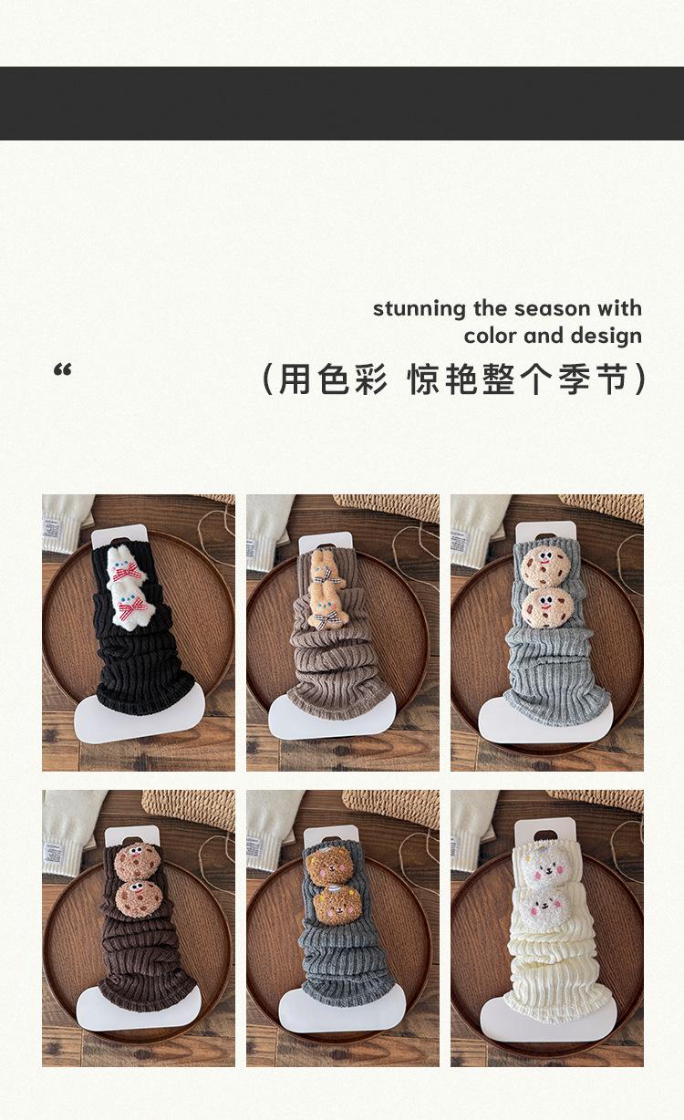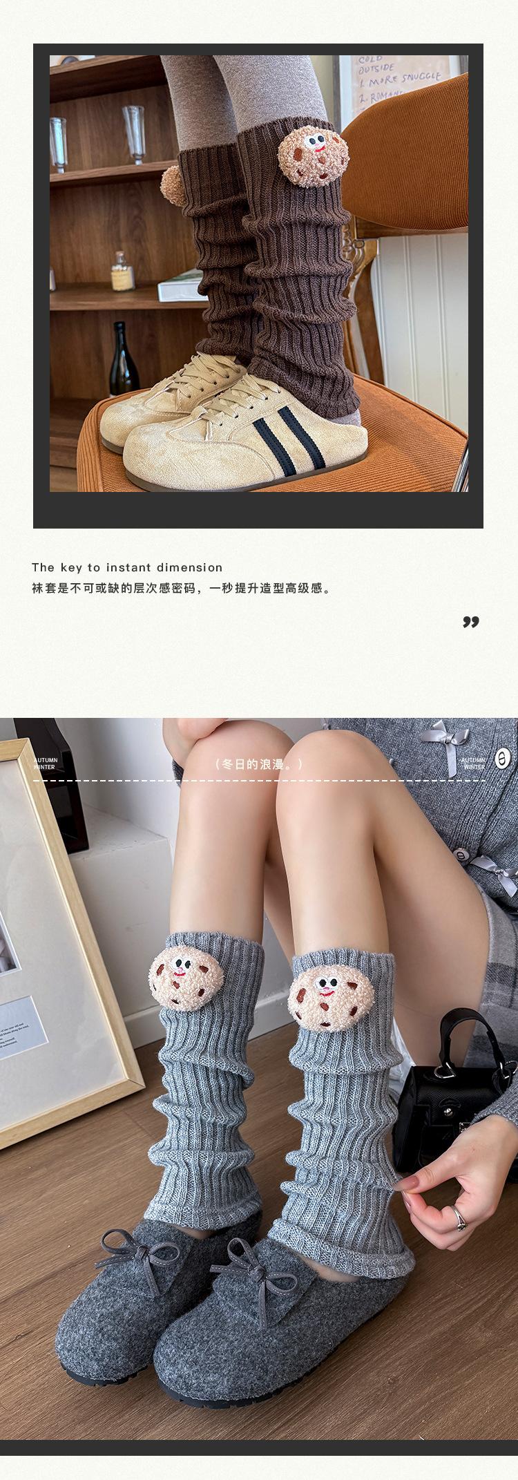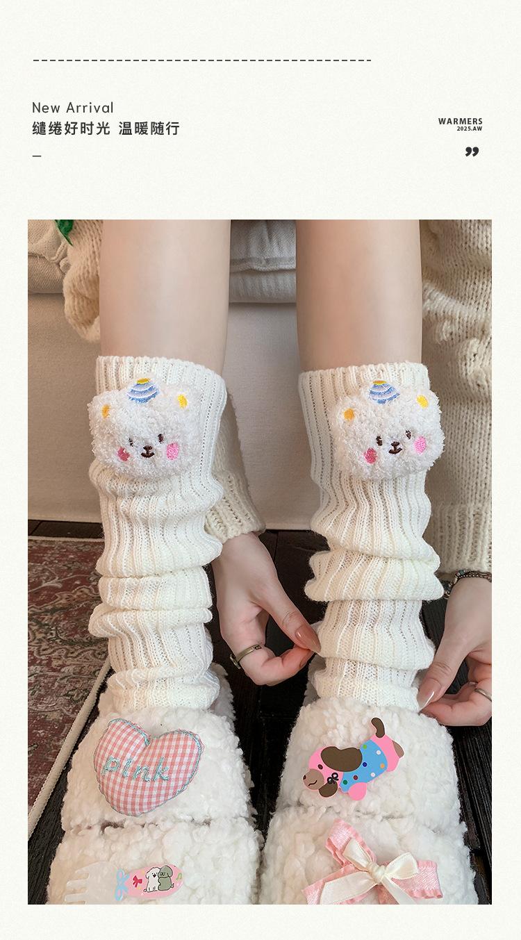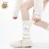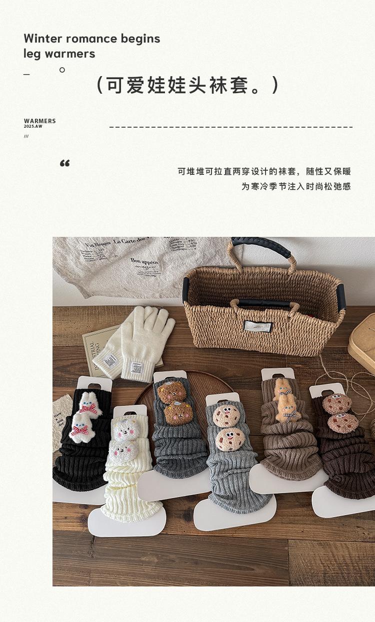 Calentadores de piernas de algodón de moda para mujer otoño e invierno lindos calentadores de pantorrilla tejidos con muñeco 3D Lolita dulces calcetines holgados cálidos