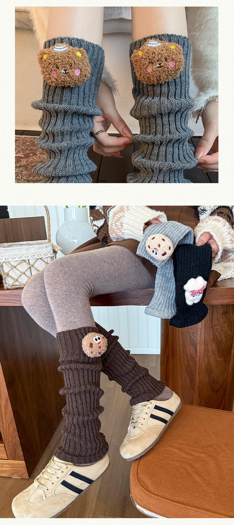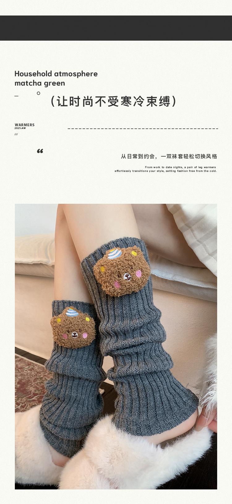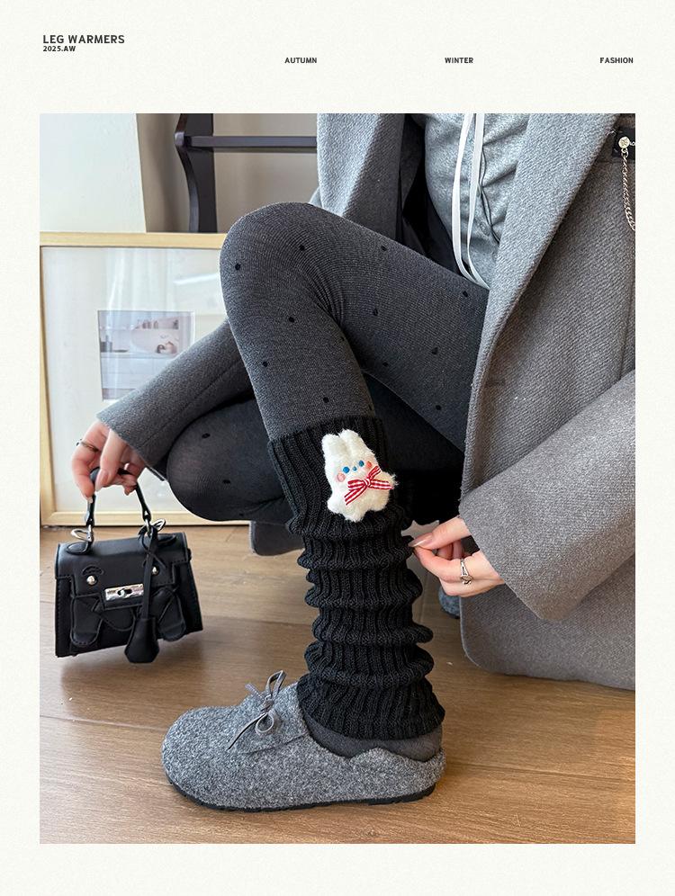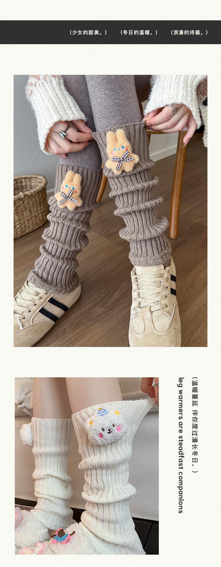 Calentadores de piernas de algodón de moda para mujer otoño e invierno lindos calentadores de pantorrilla tejidos con muñeco 3D Lolita dulces calcetines holgados cálidos