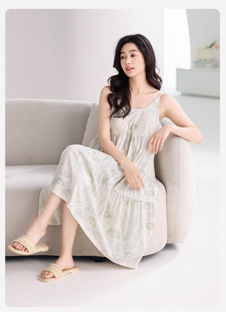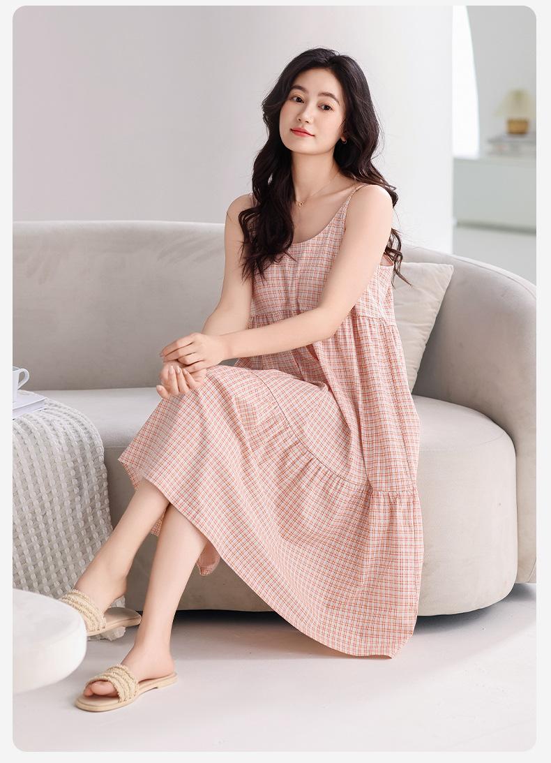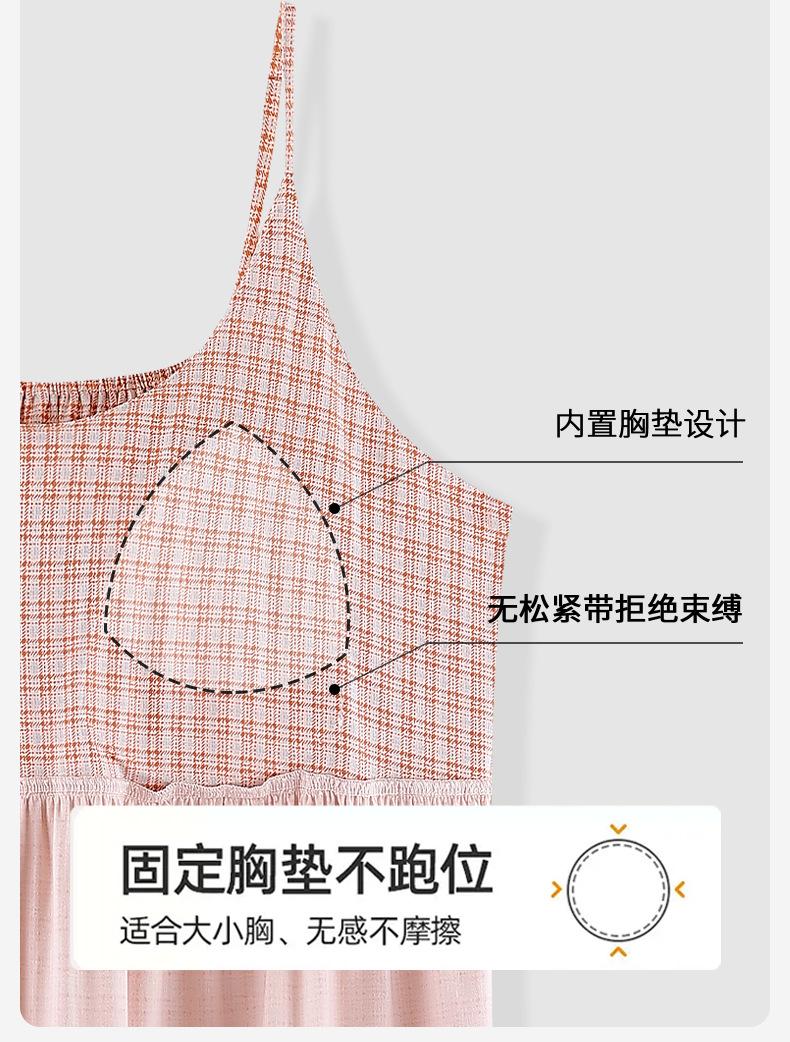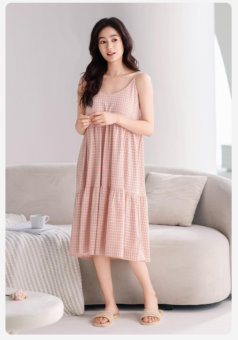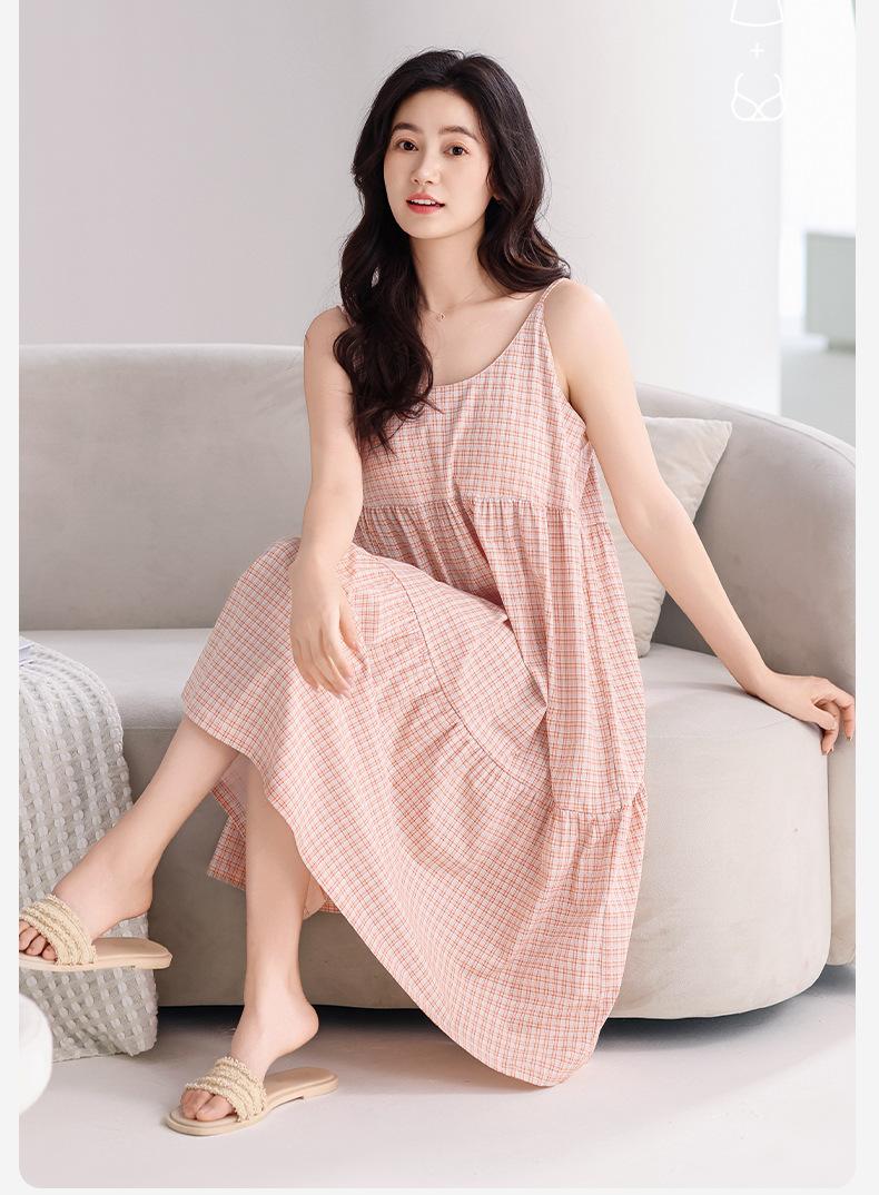 Camisón de Tirantes para Mujer Verano Algodón Puro para Mujer Verano Delgado con Almohadilla en el Pecho Ropa para el Hogar Pijama Vestido de Verano para Mujer