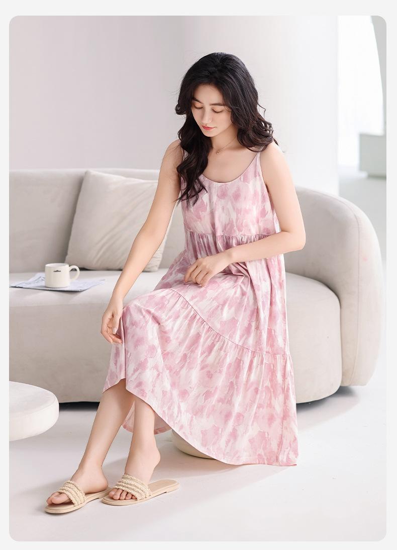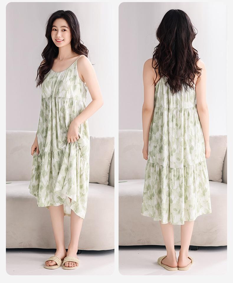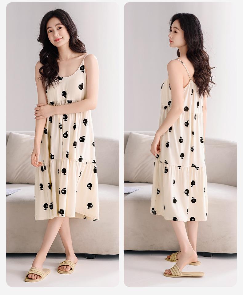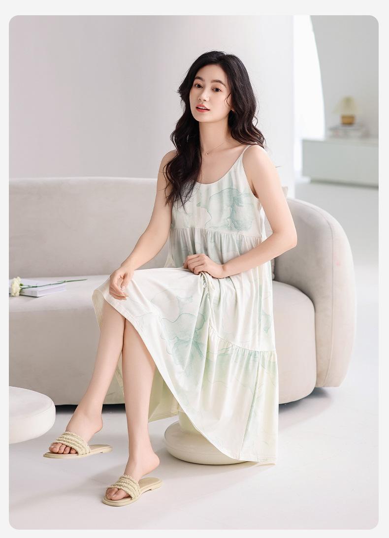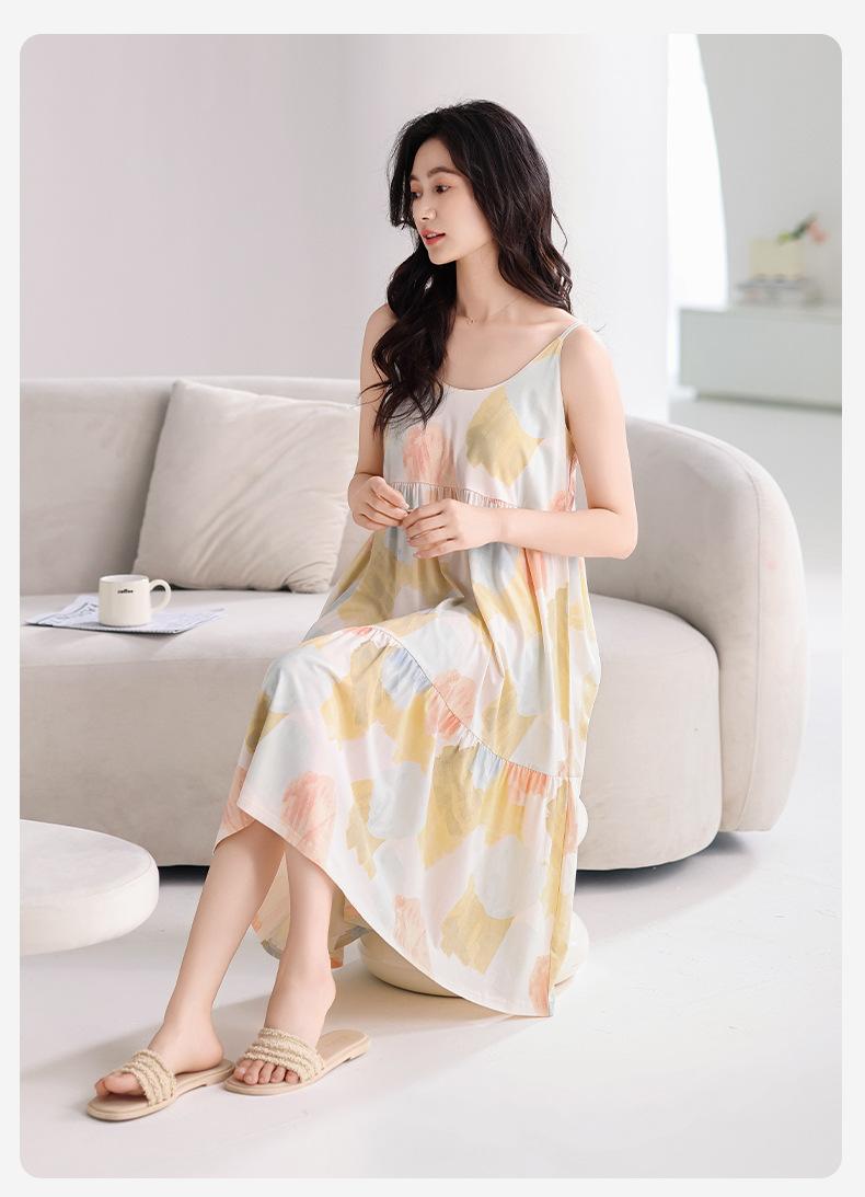 Camisón de Tirantes para Mujer Verano Algodón Puro para Mujer Verano Delgado con Almohadilla en el Pecho Ropa para el Hogar Pijama Vestido de Verano para Mujer