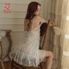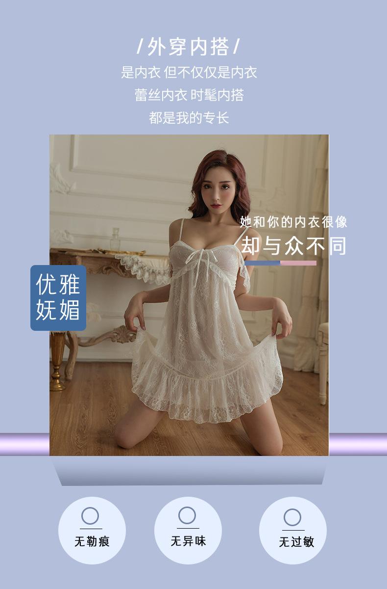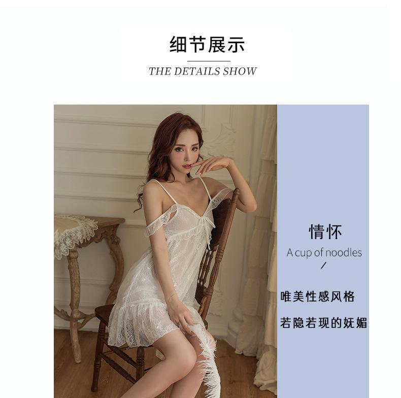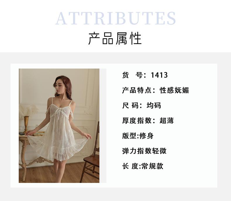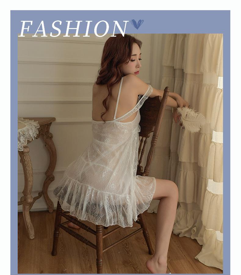 Camisón Sexy de Talla Grande Vestido Camisola Malla Transparente Camisón Encaje Adorno Tentación Mujer Hogar Vestido Largo para Dormir 1413