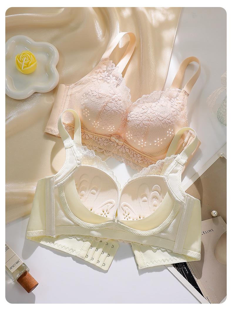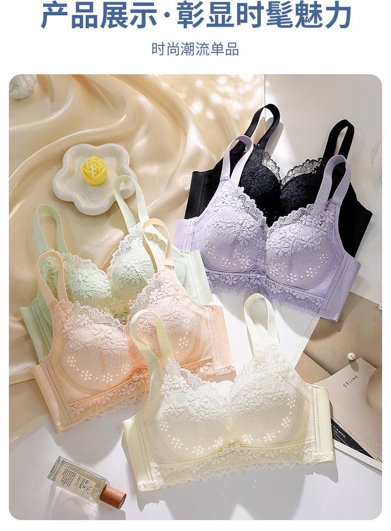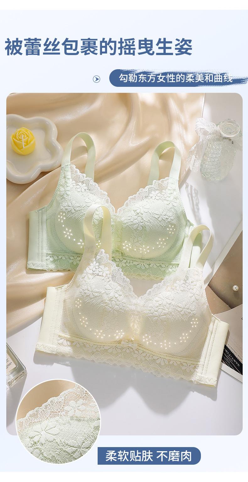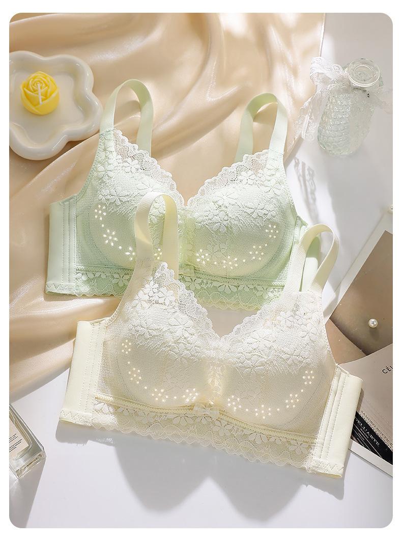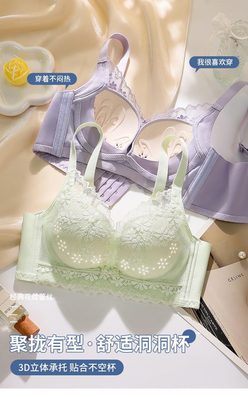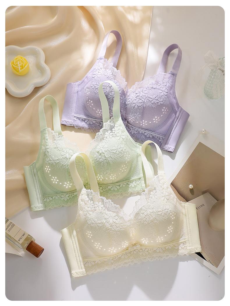 Ropa Interior para Mujer Pecho Pequeño Reunido Soporte Lateral Elevación Anticaída Sexy Copa Fina con Agujeros Encaje Sujetador Inalámbrico para Mujer