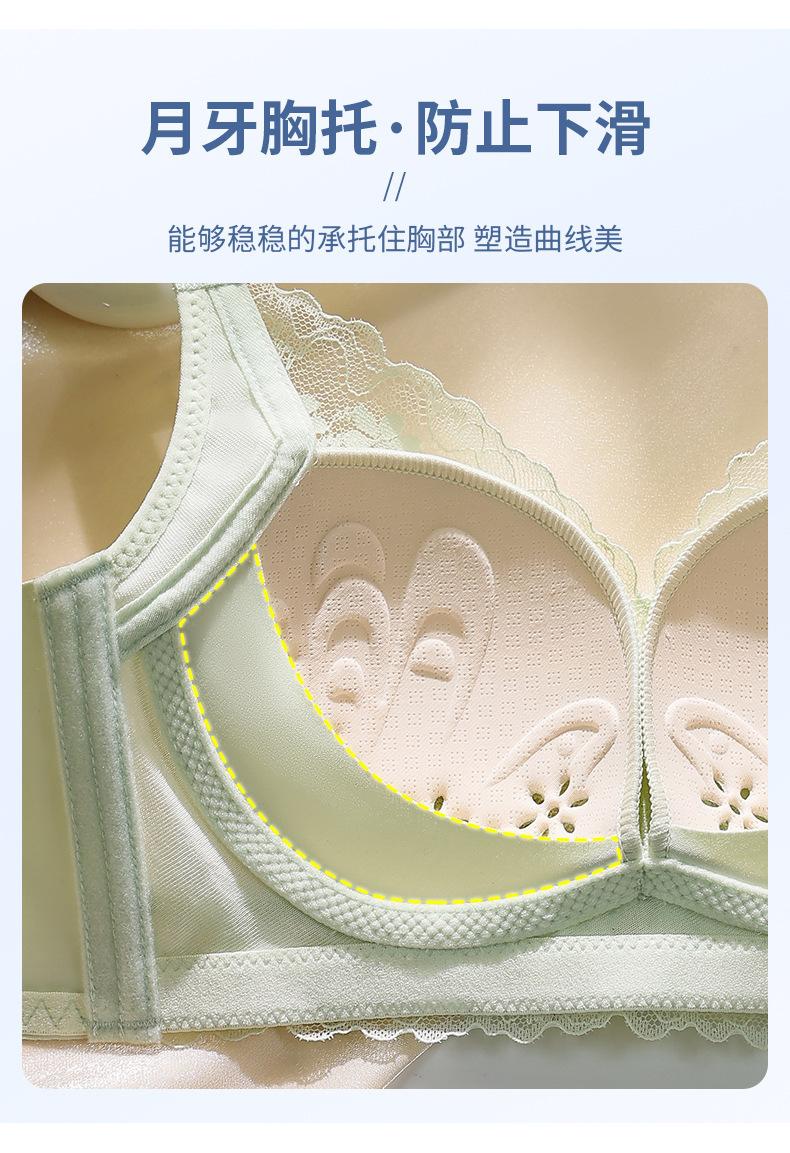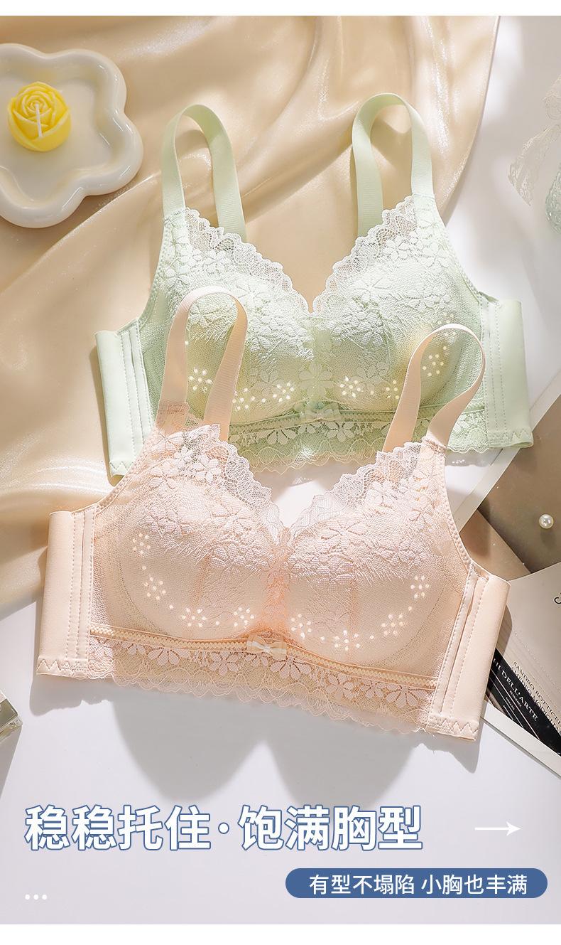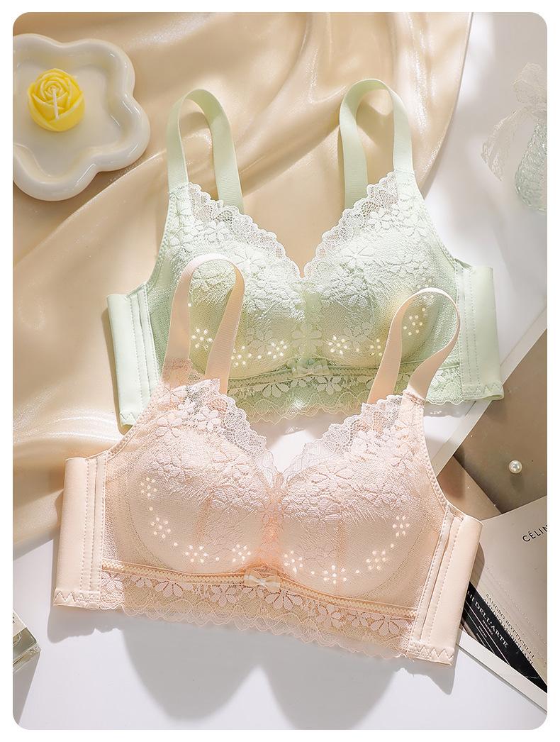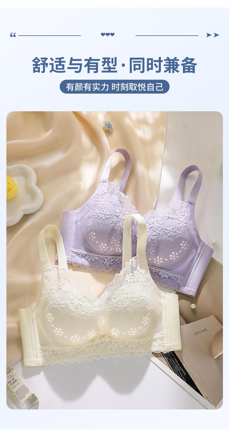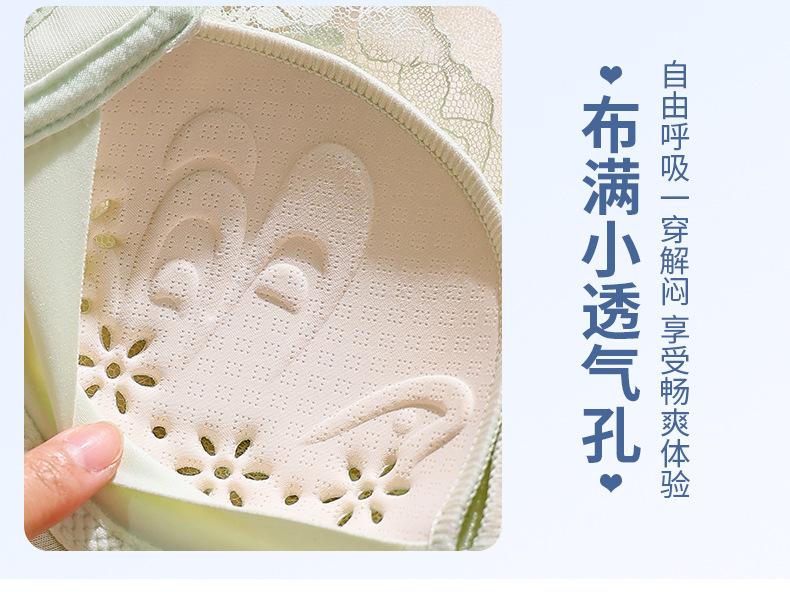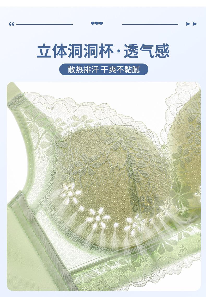 Ropa Interior para Mujer Pecho Pequeño Reunido Soporte Lateral Elevación Anticaída Sexy Copa Fina con Agujeros Encaje Sujetador Inalámbrico para Mujer