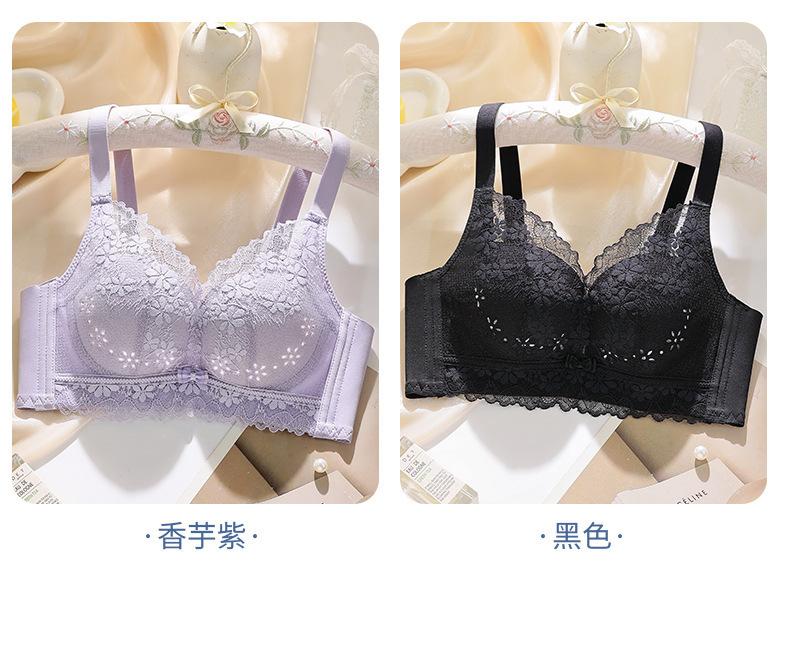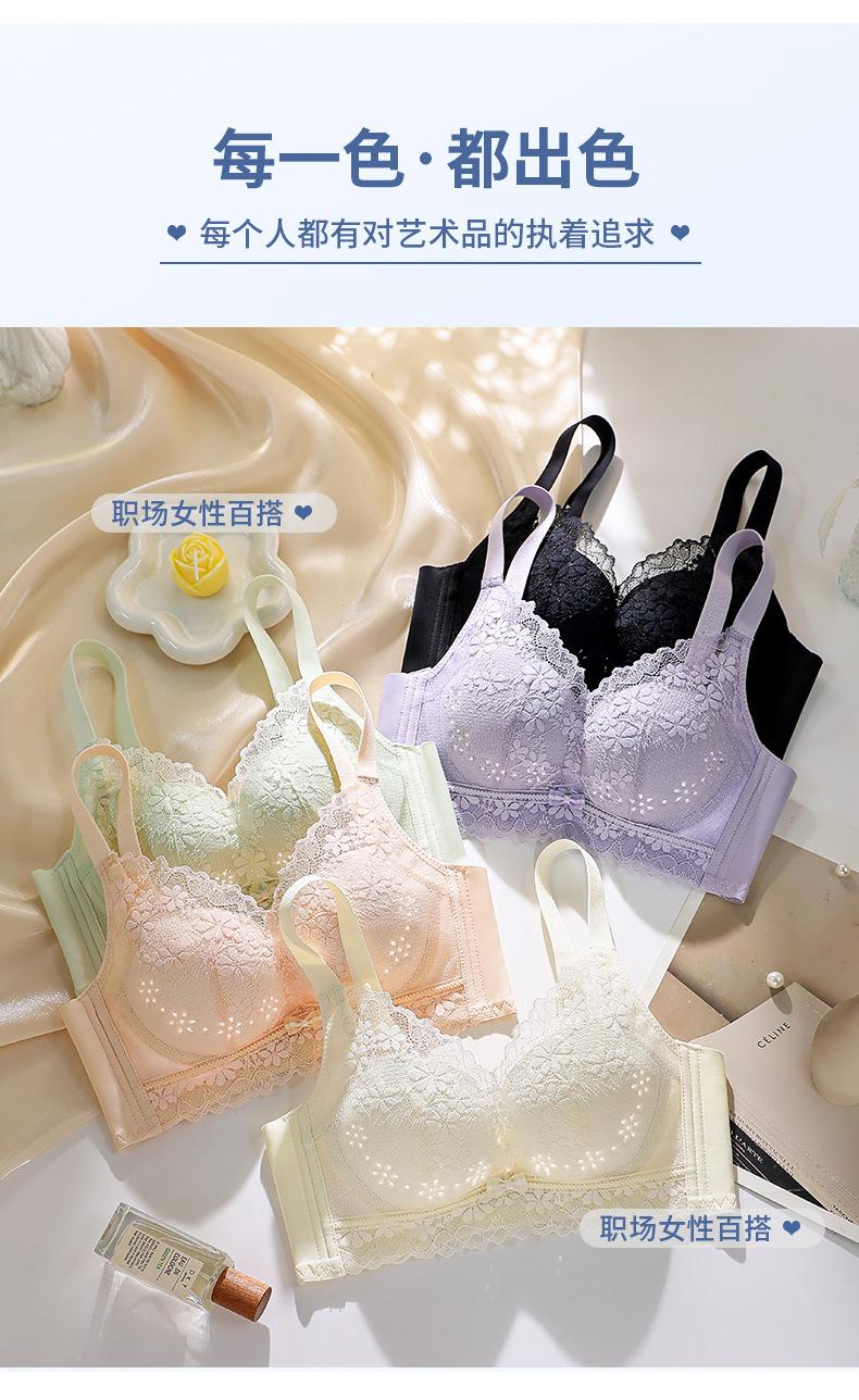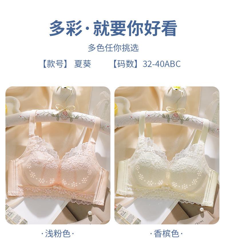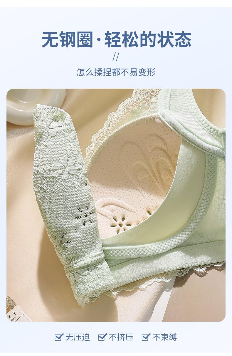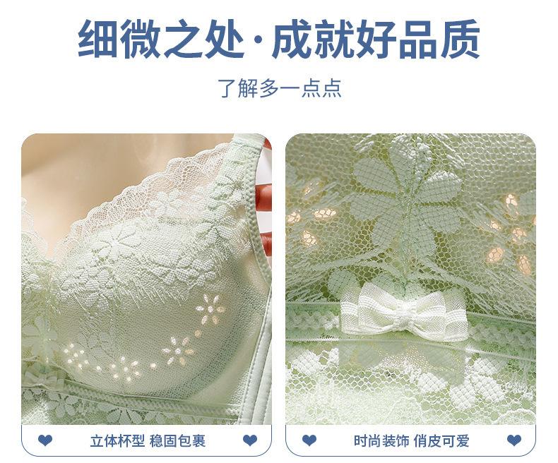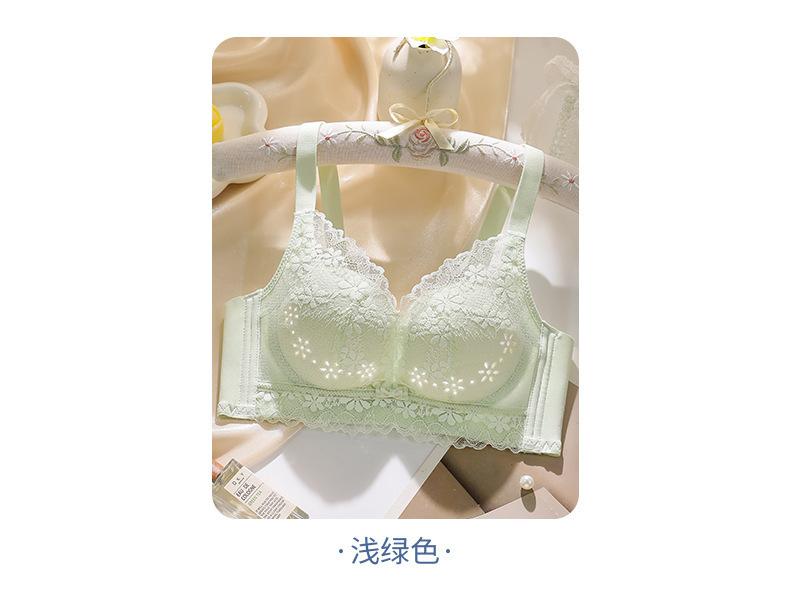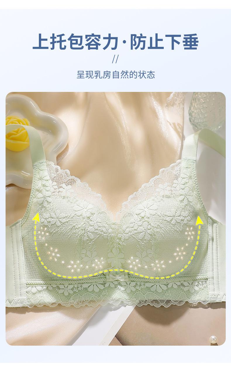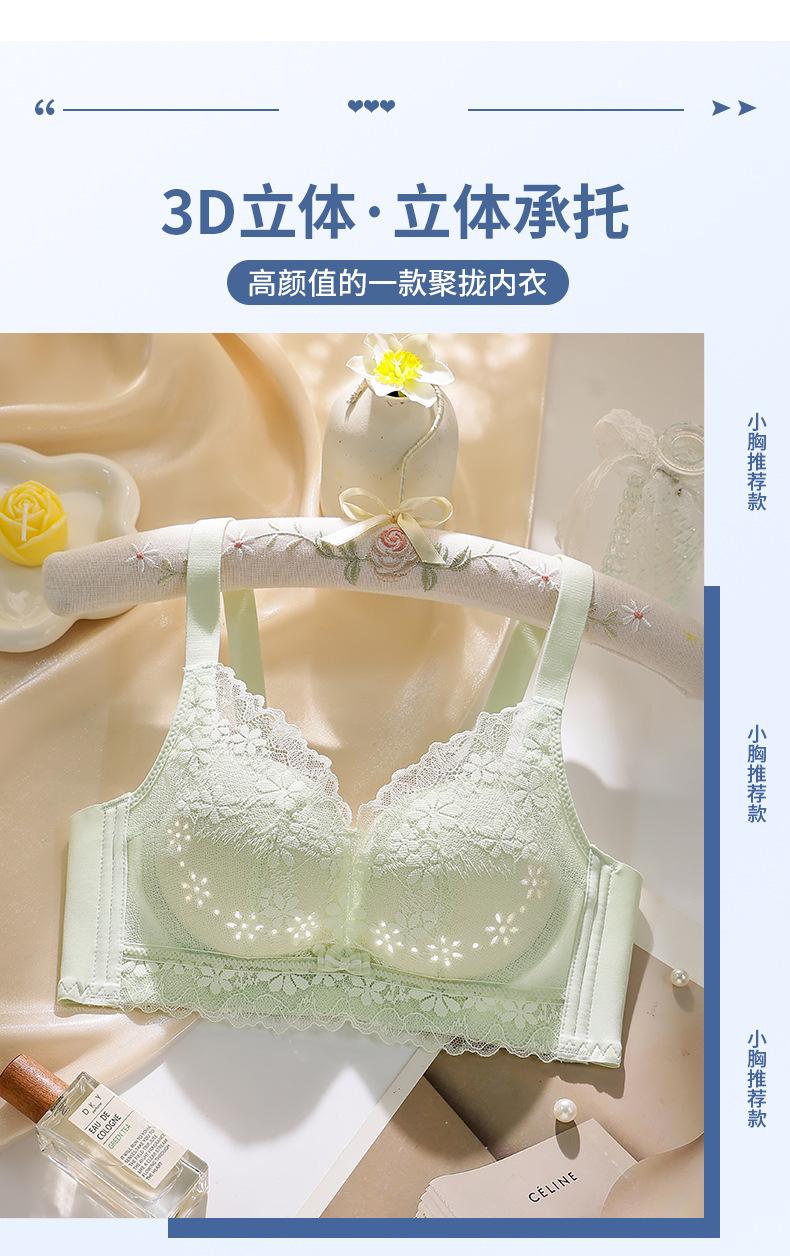 Ropa Interior para Mujer Pecho Pequeño Reunido Soporte Lateral Elevación Anticaída Sexy Copa Fina con Agujeros Encaje Sujetador Inalámbrico para Mujer