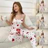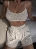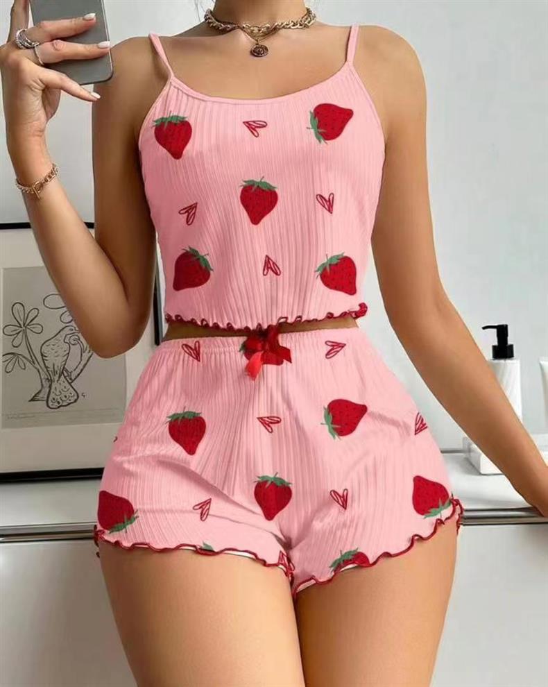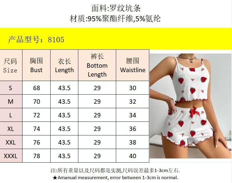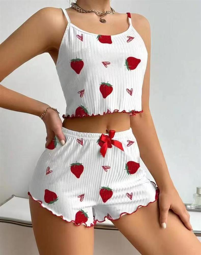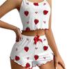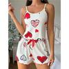 Pijamas Europeos y Americanos para Mujer Tejido de Canalé Estampado de Corazones Sexy Camisola Tank Top Shorts Ropa para el Hogar Conjunto de Dos Piezas Comercio Exterior Transfronterizo