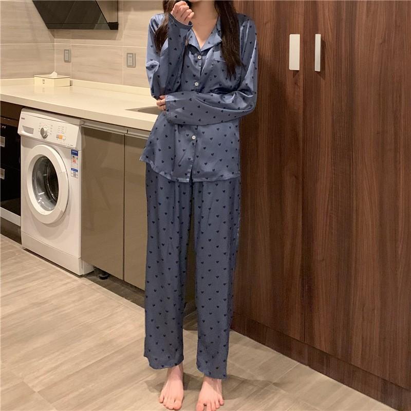 Pijamas para Mujer 2025 Estilo ins Pijama Corazón Dulce Manga Larga Ropa de Dormir para Dama Conjunto de Pijama de Seda Venta al por Mayor