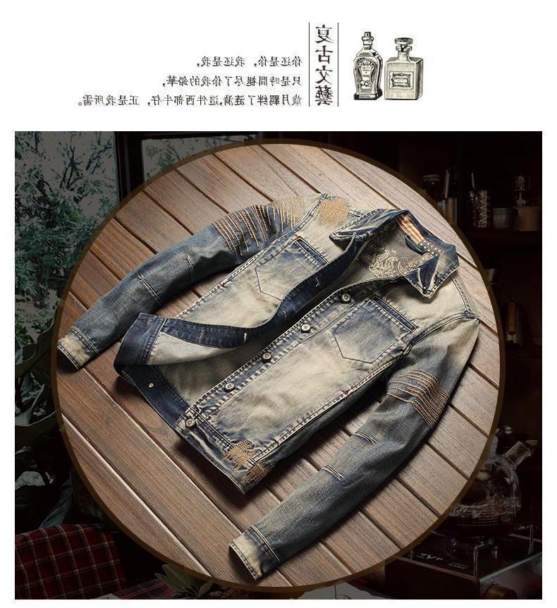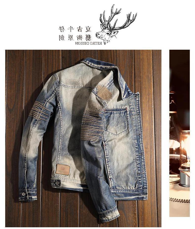 Boutique Remendando Primavera y Otoño Chaqueta de Mezclilla de Marca de Moda para Hombre Estilo Coreano Chaqueta Retro para Adolescentes Top Ajustado 2023 Línea