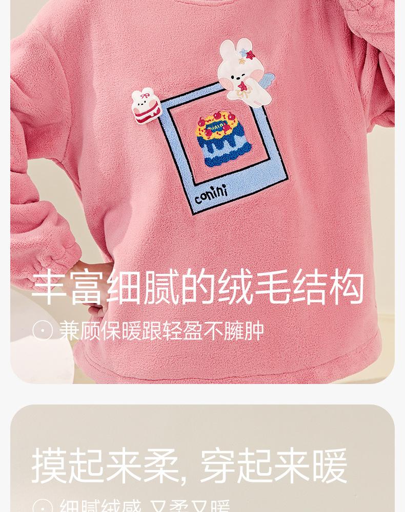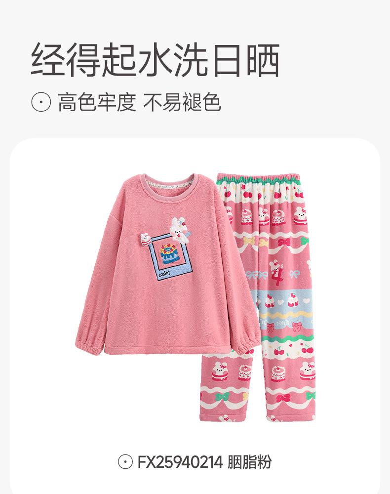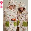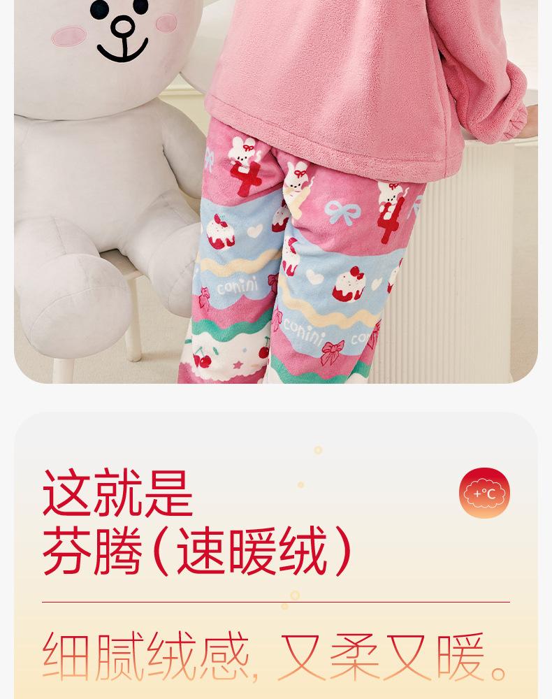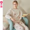 Fenteng [Forro Polar Cálido Rápido] Pijama de Mujer Otoño/Invierno Set Oso Pardo Grueso con Forro Polar Talla Extra Ropa de Casa para Mujer