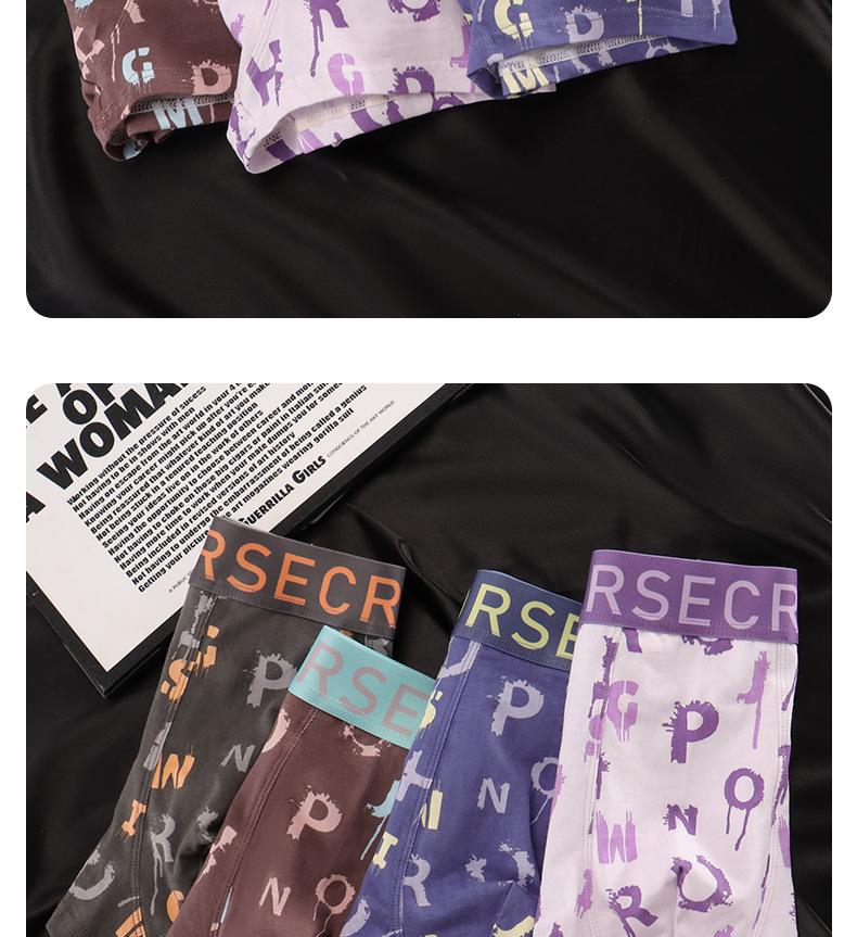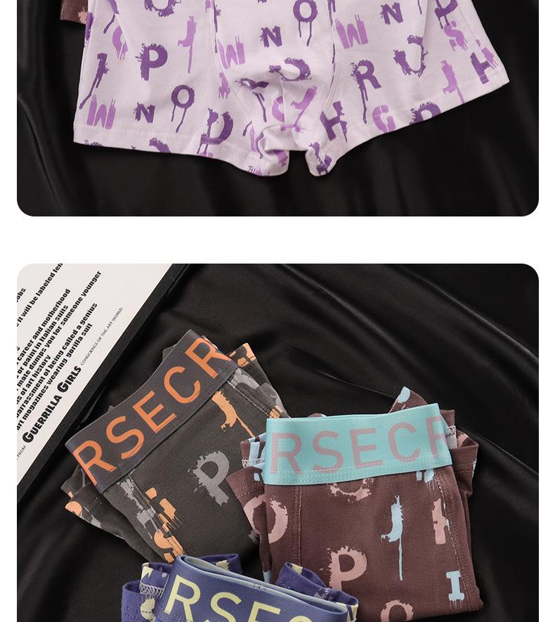 Ropa Interior de Algodón Puro para Hombre Estampado Simple de Letras Suave Antibacterial Transpirable Adolescentes Calzoncillos Bóxer Clase A