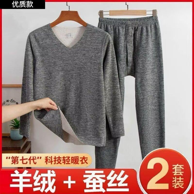 Conjunto de Ropa Interior Cálida Estilo para Hombre y Mujer Forrado de Felpa Engrosado Ropa de Otoño Pantalones de Otoño Conjunto de Ropa Interior Cálida Pareja Otoño Invierno Venta al por Mayor