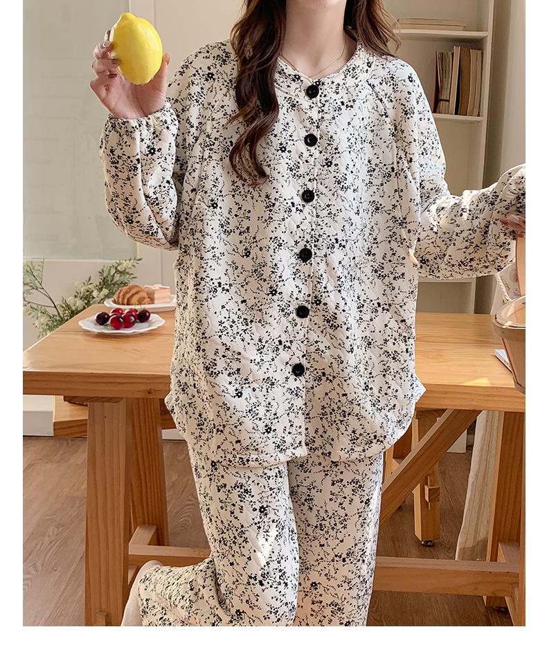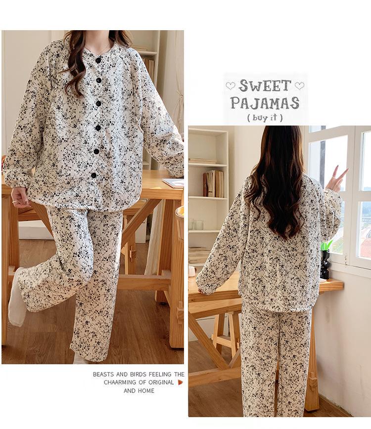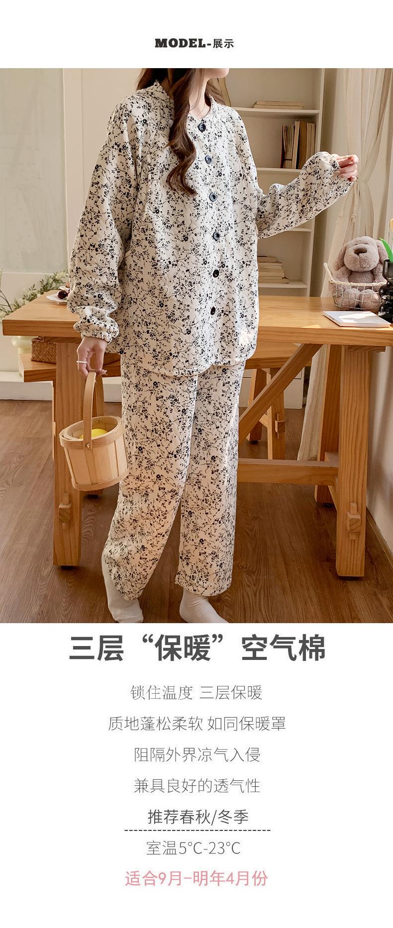 Happy Moon Ropa de Maternidad al por Mayor con Almohadillas para el Pecho Invierno Entrecapa Algodón Aire Pijama Postparto Maternidad Holgado Grueso Ropa para el Hogar