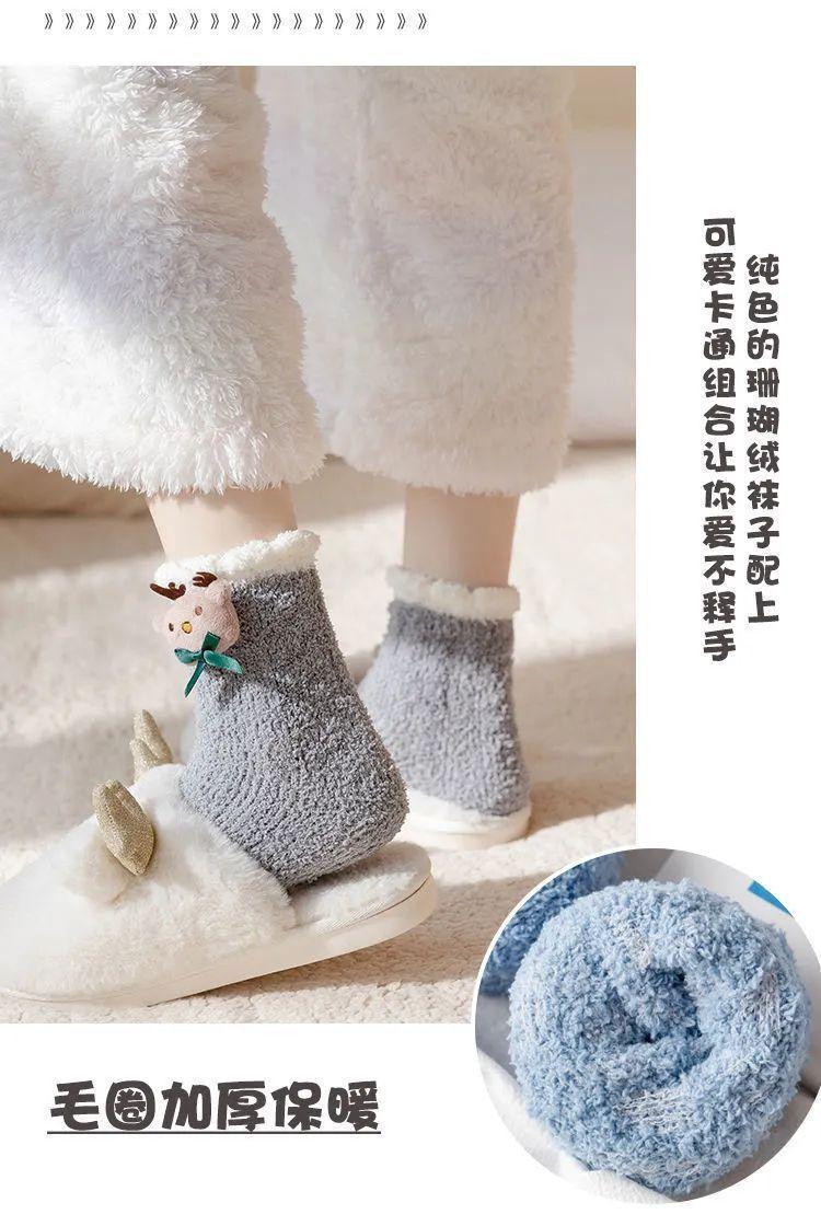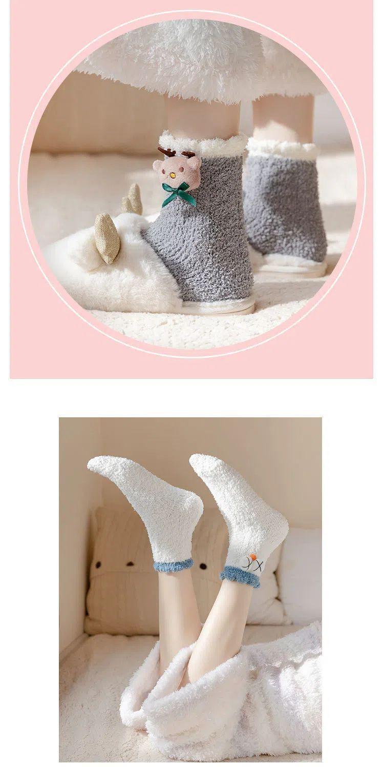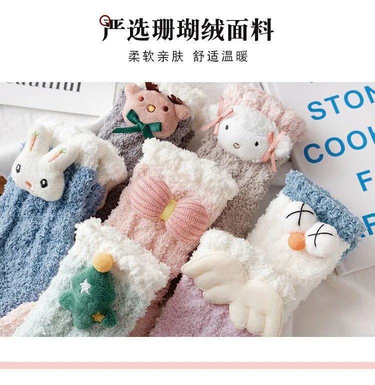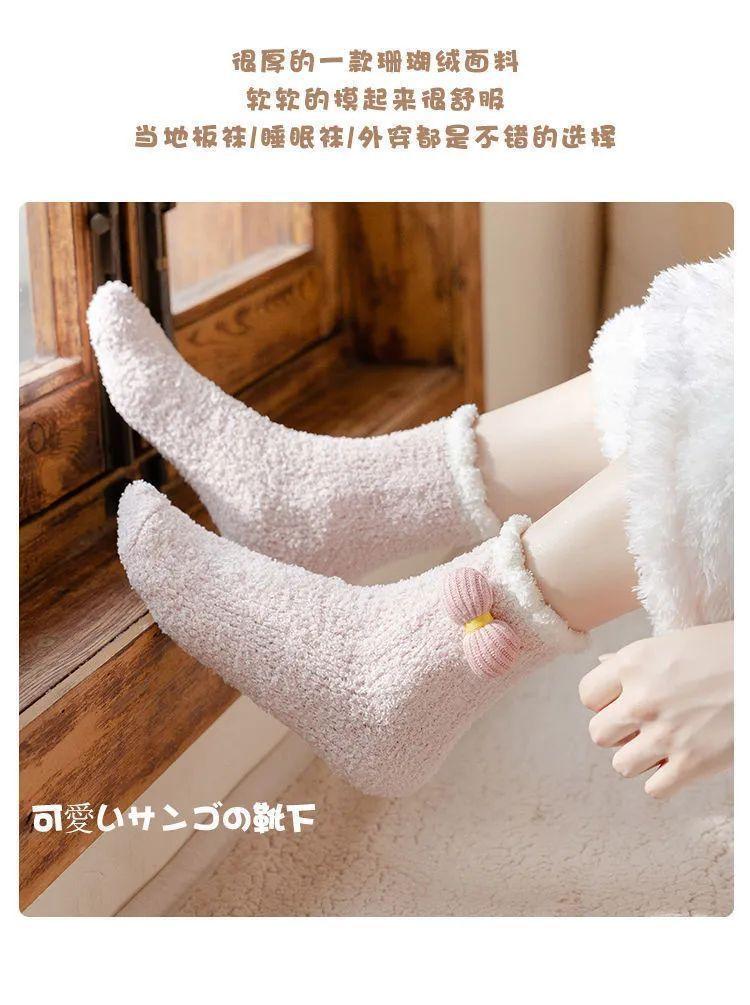 Calcetines de Maternidad de Forro Polar Coral para Mujer Otoño e Invierno Calcetines de Media Caña Lindo Estilo Japonés Súper Lindo Felpa Gruesos Cálidos para Dormir en Casa