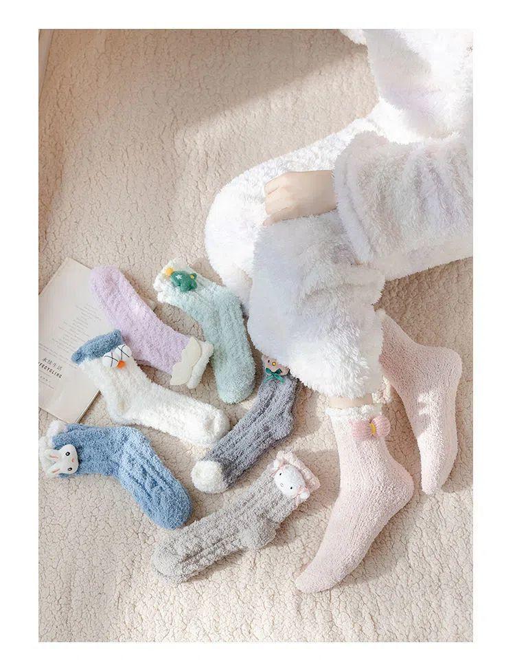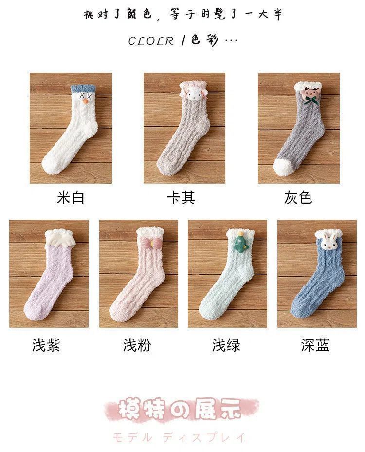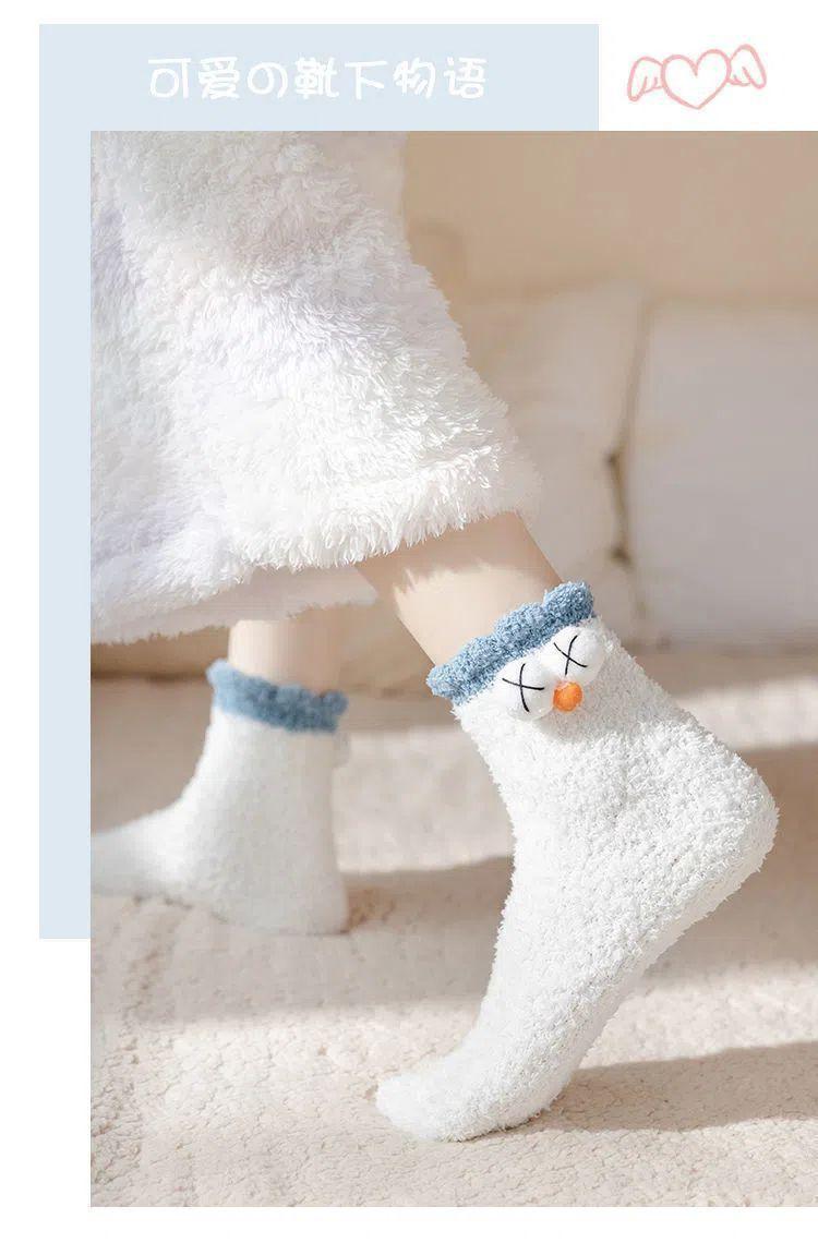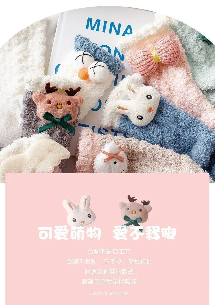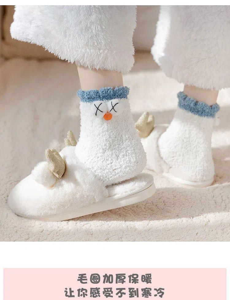 Calcetines de Maternidad de Forro Polar Coral para Mujer Otoño e Invierno Calcetines de Media Caña Lindo Estilo Japonés Súper Lindo Felpa Gruesos Cálidos para Dormir en Casa