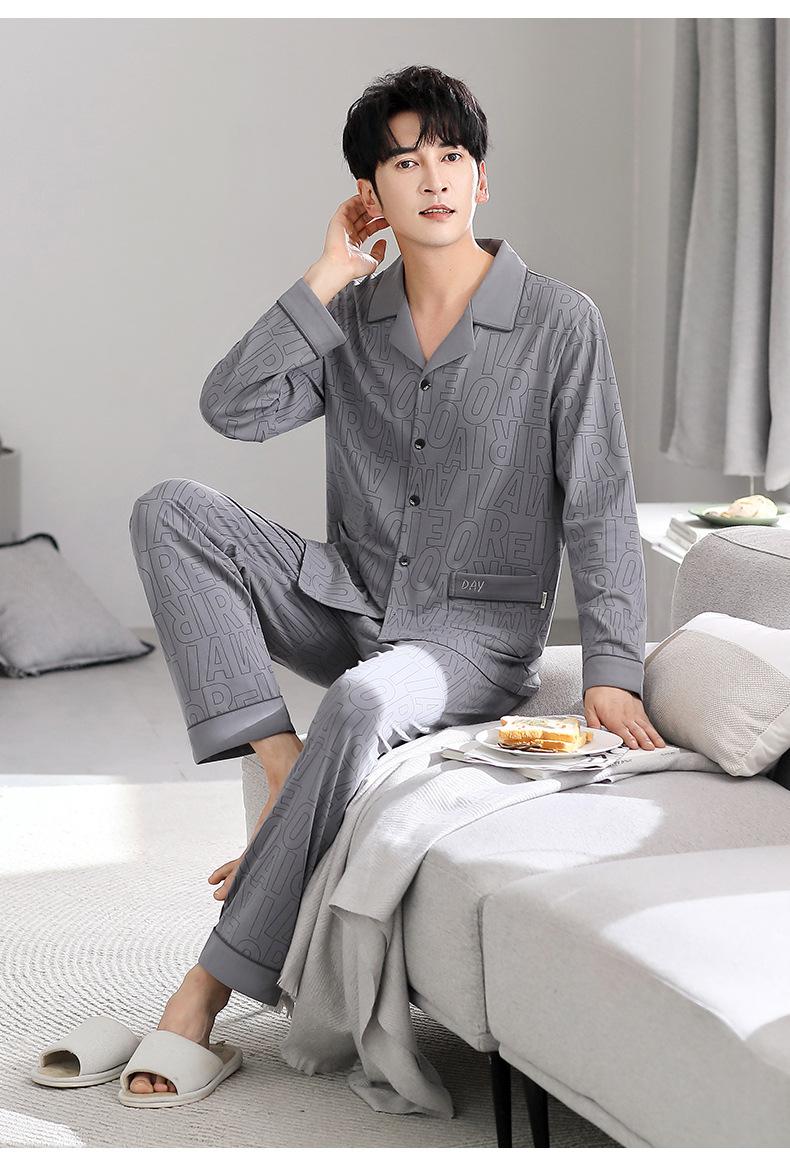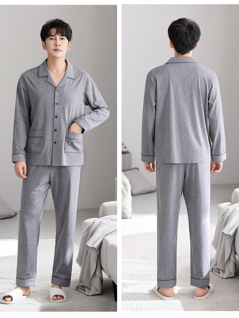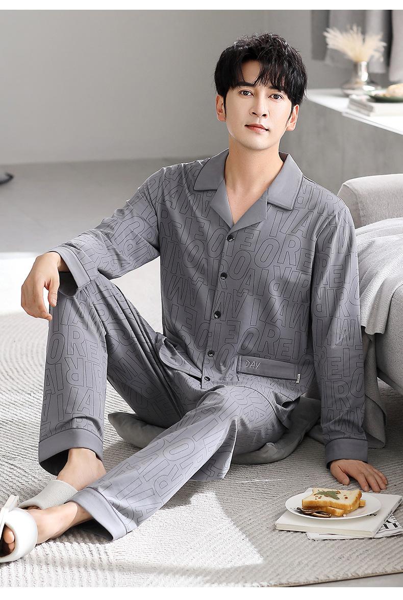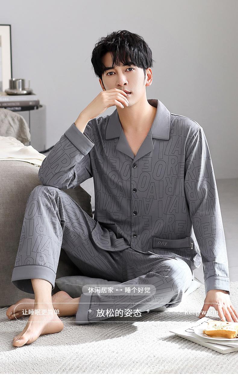 Pijamas para Hombre Primavera y Otoño Algodón Puro Manga Larga Otoño 2025 Nuevo Talla Grande Conjunto Casual para Hombre para Estar en Casa
